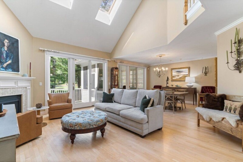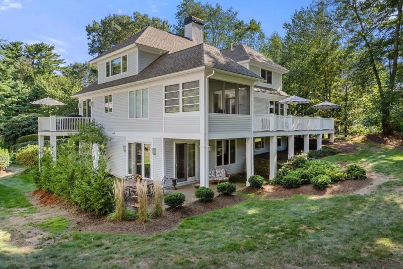 Panoramic views of the 13th Fairway of the Ipswich Country Club. This stylish property features a renovated FIRST FLOOR master suite with gas fireplace and deck. The open concept living room/dining room wrap around deck and screened porch are ideal for entertaining or quiet nights at home by the gas fireplace or al fresco dining. The modern kitchen has granite counters, stainless appliances, an east facing dining area with its own balcony great for grilling or morning coffee overlooking a private walled garden. The second floor has a family room, two additional bedrooms that share a full bath and an office or art studio. A walk out lower level, ideal for guests or extended family, features a large living room, a bedroom, full bath and an additional bedroom or office. There is a sauna room with a bath & shower. Minutes to charming Ipswich or Newburyport center, there are a plethora of shops, restaurants and beaches. NEW HEATING/AC SYSTEM OPEN HOUSE Saturday and Sunday!.