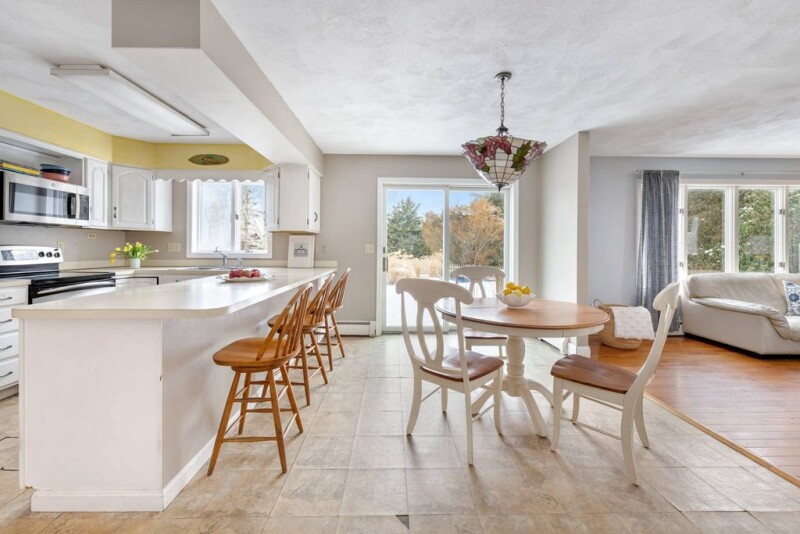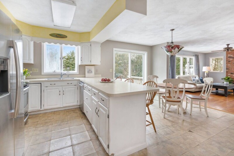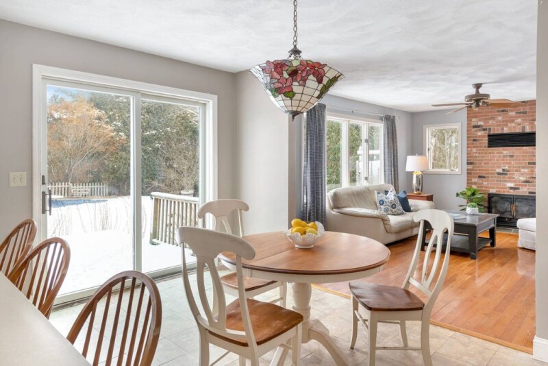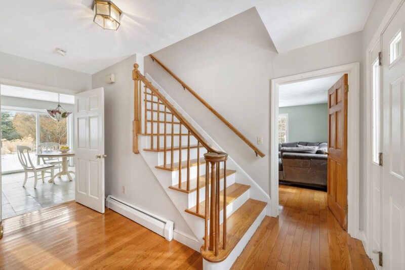 Located in Southern Portsmouth, just off Wapping Road, with local farm stands, vineyards, and beaches nearby, is this four bed, three full bath gambrel colonial. Set at the end of a small cul-de-sac, the property is sited on a half-acre of land. The residence offers a traditional floorplan at the entry foyer, then expands to an open concept living space in the back of the home. Just off the kitchen, are sliding glass doors that open to a private back deck, fenced backyard with in-ground pool. Step upstairs to two guest bedrooms, full bath, primary bedroom with en-suite bath, an oversized bonus room, and private guest bedroom.