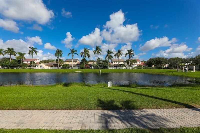 GORGEOUS 4/4.5 LAKE FRONT POOL HOME WITH 3 CAR GARAGE AND CHARGING STATION. 1 FULL BEDROOM/BATH DOWNSTAIRS. HIGH CEILINGS THROUGHOUT THE HOME. ALL WOOD FLOORING DOWNSTAIRS/STAIRS WITH CARPET IN THE BEDROOMS. RECESSED LIGHTING THROUGHOUT. LARGE OPEN KITCHEN THAT OFFERS A WONDERFUL ISLAND, MARBLE COUNTER TOPS, WOOD CABINETS, STAINLESS STEEL BOSCH STOVE/DOUBLE OVEN AND SAMSUNG REFRIGERATOR. ALL IMPACT WINDOWS UPSTAIRS AND HURRICANE COVERINGS DOWNSTAIRS. PRIMARY BEDROOM HAS LARGE WALK IN HIS/HER CLOSETS AND THIS IS THE ONLY MODEL WITH OPEN AN BALCONY OFF THE BEDROOM. LAUNDRY ROOM UPSTAIRS IS A PLUS. ENJOY THE POOL AND LAKE VIEW WITH A BRICK PAVED DECK THAT OFFERS A GREAT COVERED PATIO AREA FOR ENTERTAINING, BBQ'S OR JUST TO RELAX. CLOSE TO THE HIGHWAY, FINE DINING, AND HARD ROCK.
