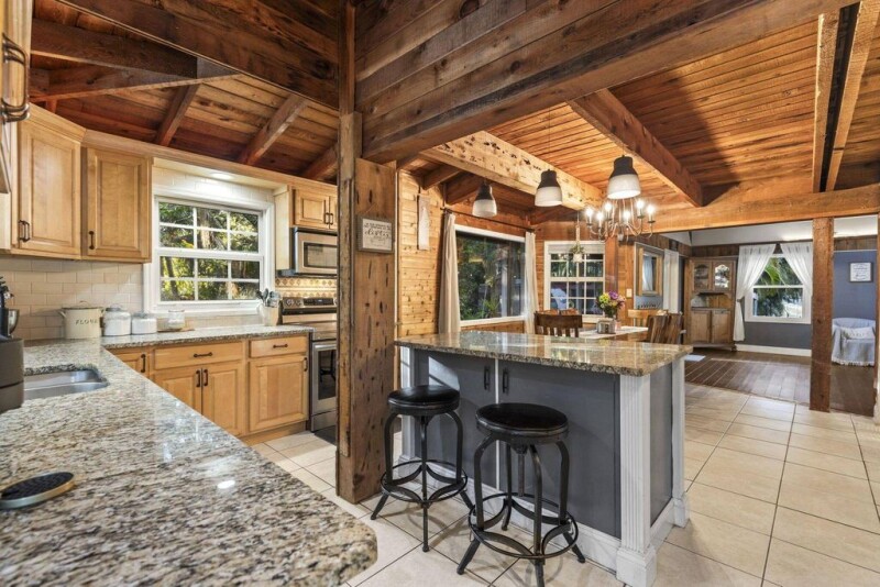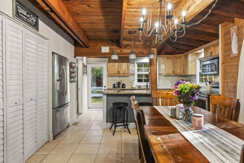 Welcome to this unique 4-bedroom, 3-bathroom home situated on a rare 1.82-acre lot in Indian River Estates, just 5 miles from the beach! Offering 2,718 sq. ft. of living space, this property combines country charm with modern updates. The updated kitchen features soft-close cabinets, granite countertops, and an oversized island with additional storage. The second-floor wrap-around deck provides beautiful views of the serene surroundings. The primary suite includes a spacious walk-in closet and an ensuite bath with frameless shower doors. A guest bedroom has a Jack & Jill bathroom for added convenience. The home also boasts partial impact windows, real wood floors, tile, and LVP flooring. Outdoor enthusiasts will love the outdoor pizza oven, fire pit, chicken coop, and screened-in.