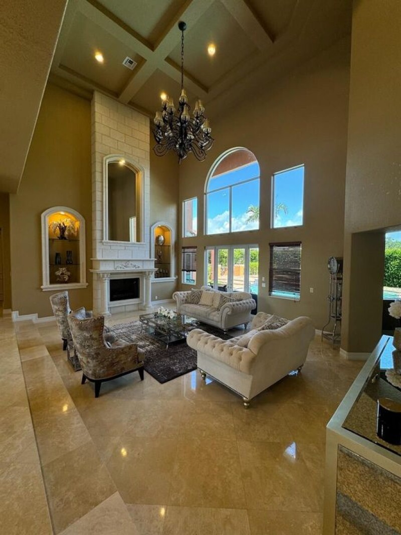 5 Bedroom 6 Bath Plus Huge Office 7,232 square feet Huge Lot BEING SOLD FULLY FURNISHED Sprawling estate home offers 5 ensuite bedrooms 6 baths, showcases meticulous attention to detail w/its gracious foyer, Huge office, double height living room & dining room all adorned w/coffered ceilings, chandeliers & stonework. Gourmet kitchen & summer kitchen welcomes intimate family fun to gala entertaining.