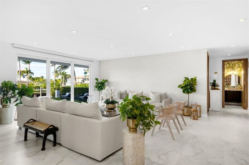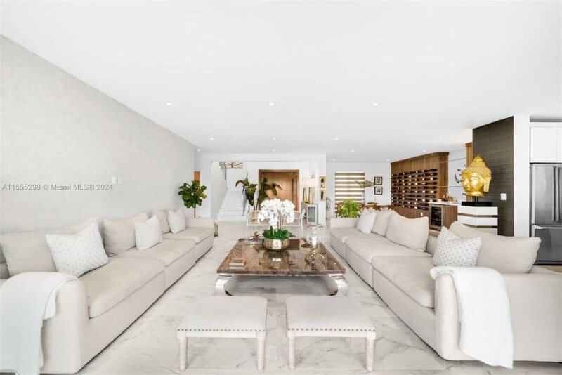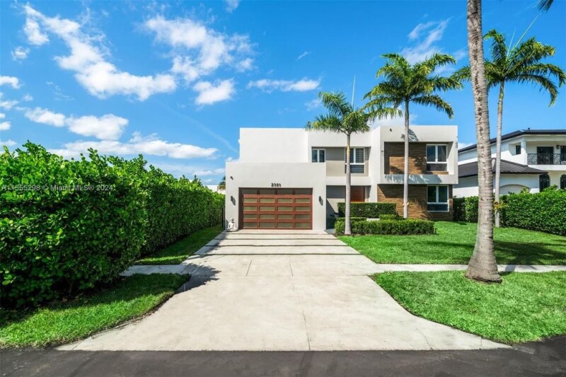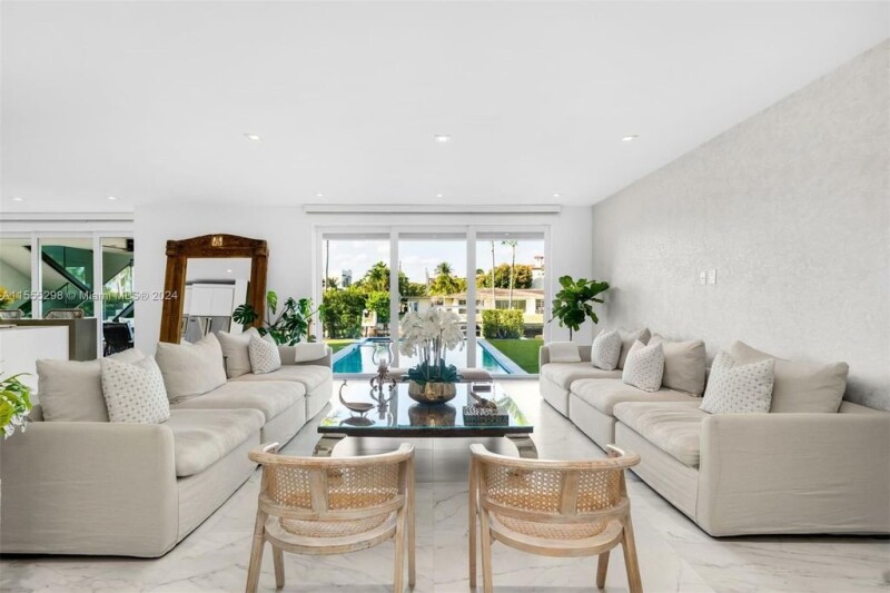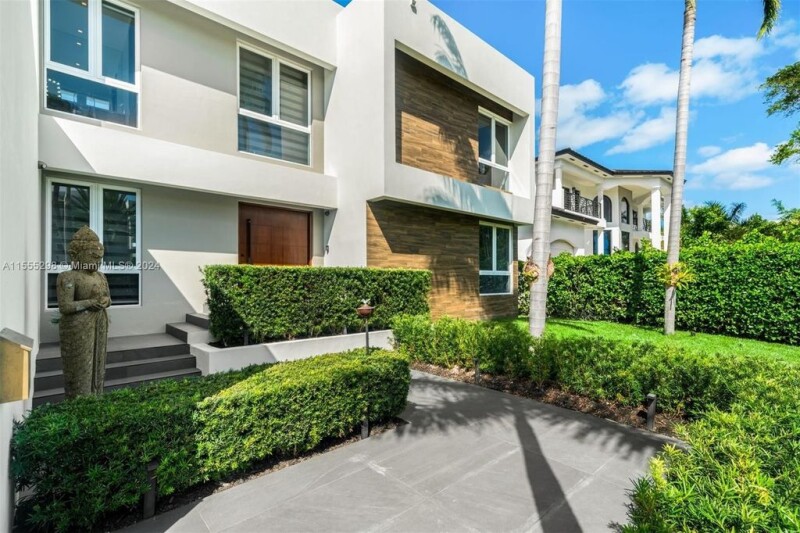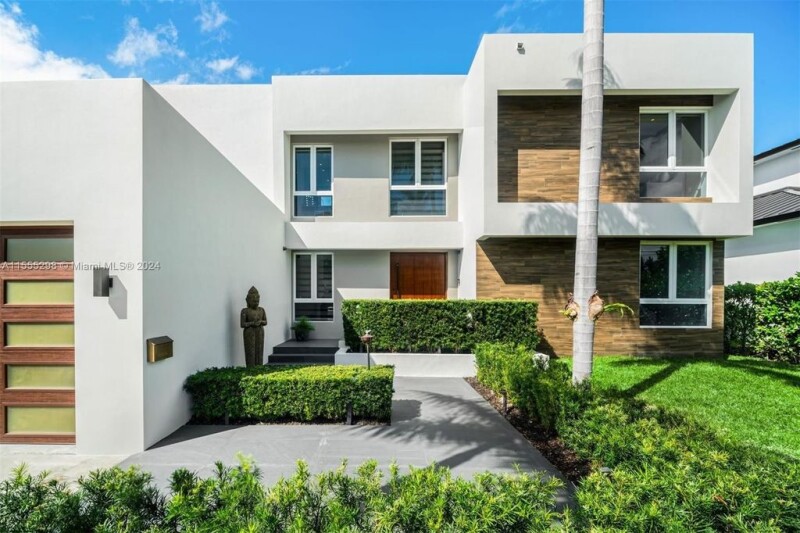 Waterfront marvel, built in 2018 with contemporary style! This custom-designed home offers 5 beds, 5 baths, plus flex space for office or 6th bedroom. Experience seamless living with an open floor plan and revel in water vistas from every room within. High-end appliances, 2-car garage. Outdoor bliss awaits with a pool, waterfall Jacuzzi accented by Italian glass, and a perimeter Mosquito-mister system. Enjoy a 1,200 sqft rooftop patio, 75ft waterfront with direct access to Biscayne Bay. Rest easy with CCTV security cameras and 12 speakers pre-installed for a surround sound system. Nestled at the cul-de-sac's end in a 24-hour guard-gated community mere minutes from Miami Beach and Downtown Miami. Experience the epitome of waterfront luxury living.