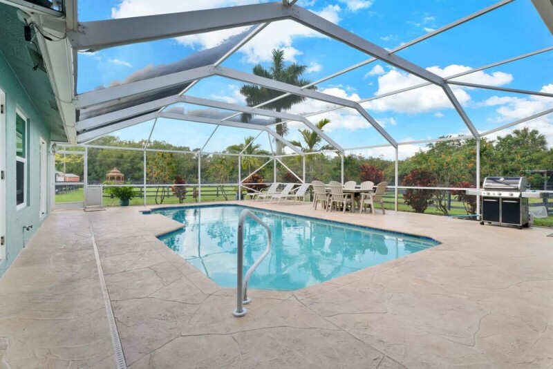 This fabulous equestrian property offers so many desirable attributes... The home offers 3 spacious bedrooms plus 2 attached apartments, 4 bathrooms, an office/den, both formal living and family rooms. Other notables improvements include IMPACT GLASS WINDOWS, renovated bathrooms, gorgeous tile flooring throughout, a screened pool, gated entrance, covered and open patios and the list goes on... An equestrian's dream as this working horse farm with 3.43 acres has all of the components you're looking for... 9 paddocks, dressage arena with mirrors, Fleet Fiber Footing, a 12 stall center isle barn with 3 grooming/wash areas, air conditioned tack & feed rooms, 6 walk outs, water spigots in each stall, concrete manure pad, washer, dryer, and a covered viewing gazebo...