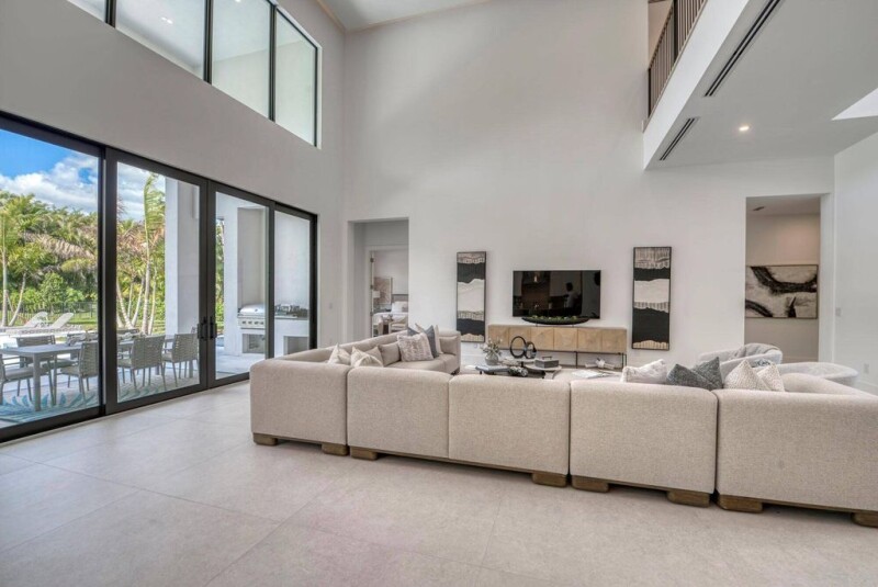 Setting the bar for modern new construction in The Club at Ibis, this incredible 5 bed, 5 1/2 bath property spans over 4,600 sqft of pure perfection, achieving unparalleled scale and quality. The attention to detail and seamless flow throughout are realized upon the moment of entry. Elegant and open, the main living area features 20 plus ft ceilings with 10 ft tall sleek sliders offering a dramatic indoor/outdoor living experience. A state of the art kitchen complete with top of the line Sub Zero & Wolf Appliances, waterfall countertops at island, and hidden pantry. The ground floor primary suite boasts warm wood flooring, huge dual walk-in closets, seamless glass shower and soaking tub, and beautiful porcelain tile.