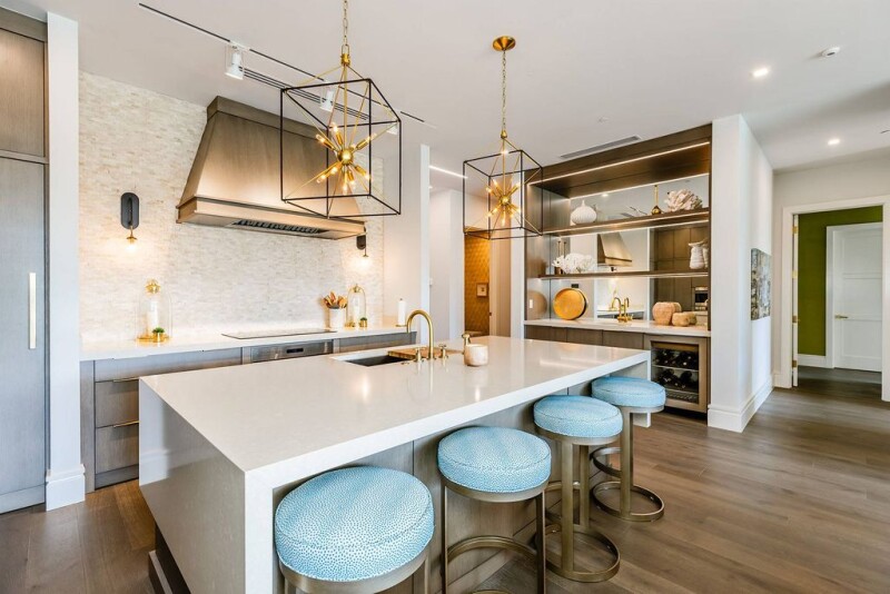 In heart of Old Naples, 505 on Fifth is an eight-residence complex styled in a beautiful contemporary manner. Unit 201 has a 9-by-50-foot balcony overlooking 5th Avenue South that looks across the street to a small park. This three-bedroom condominium has 10-foot ceilings with 2.5 baths. Fully furnished, including art, this second-floor condominium is ready to move in. When you are having a cocktail on your balcony, you look left and right and see all activity on 5th Avenue. At night, you see all the lights and excitement of entertainment, Naples style! Just outside your door, you can go to coffee, dining and world-class shopping. You are also just five blocks from the sandy beaches of the Gulf of Mexico. The gourmet kitchen has a wall of cabinetry, high-end Wolf, Sub-Zero and Bosch appliances, a walk-in pantry, and a large island with seating on one side. The dramatic great room and dining room have sliding glass doors that open to the balcony on 5th Avenue South. The primary bedroom has two walk-in closets, and a bath with two sinks and separate shower and bath. In-unit laundry too. On the street level, there is one dedicated parking spot in the garage.