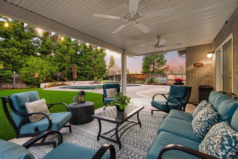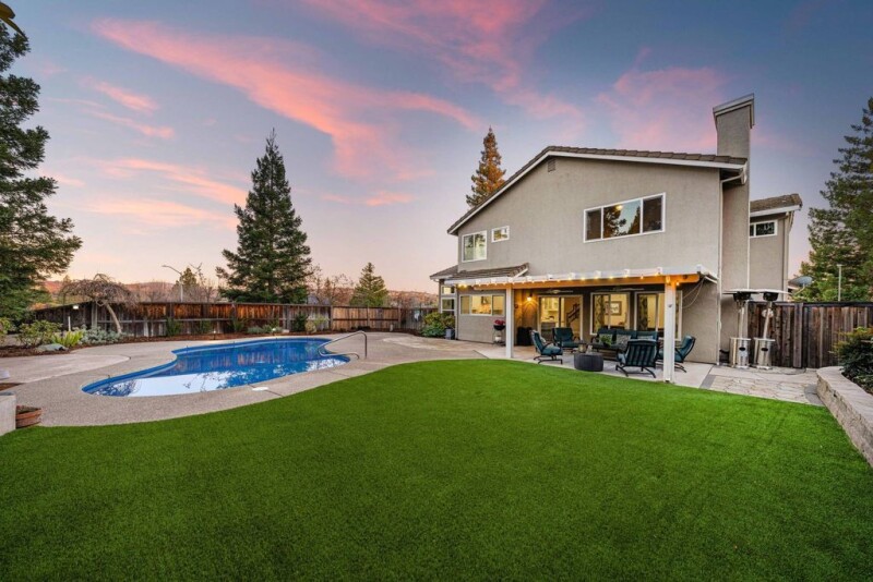 This stylish residence has been meticulously remodeled to deliver an exceptional living experience. Featuring a thoughtfully designed floor plan and premium upgrades, this home seamlessly blends style, solar-powered efficiency, and comfort-perfect for modern living. The interior features a welcoming grand entry, lofted ceilings, a stunning staircase, beautifully crafted wood flooring throughout, and a chef's dream kitchen with sleek granite countertops, a designer backsplash, bar seating, and top-of-the-line stainless steel appliances. The kitchen opens to a spacious family room and outdoor oasis, ideal for year-round entertaining. Formal dining and living rooms add sophistication, while a handcrafted wine bar with dual wine refrigerators enhances luxury. The family room centers around a cozy stone fireplace, creating a warm and inviting atmosphere. The luxurious primary suite offers spa-like amenities and unmatched comfort. The exterior features include a private corner lot with waterwise landscaping, mature trees, artificial grass, a covered patio, and a sparkling pool designed for entertaining. A three-car garage and a charming covered porch add both style and practicality. Located just minutes from shopping, dining, top-rated schools, trails, and Folsom Lake. Welcome home!.
