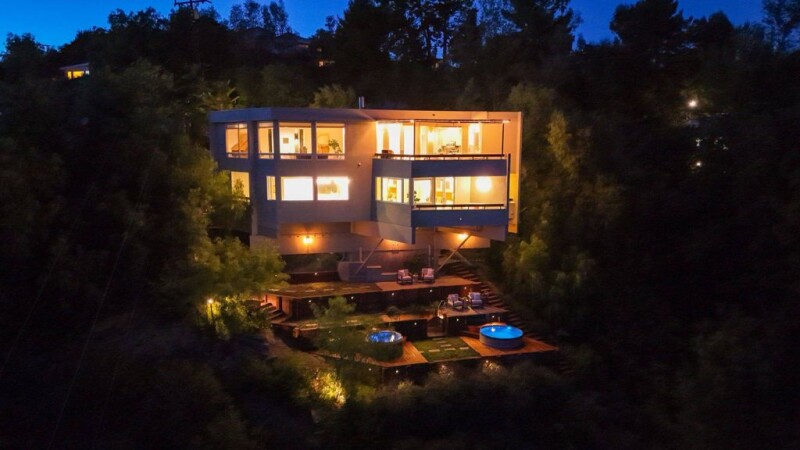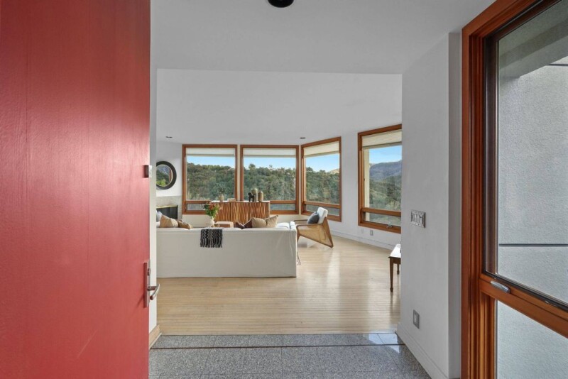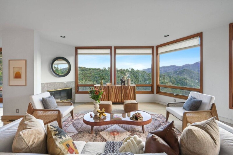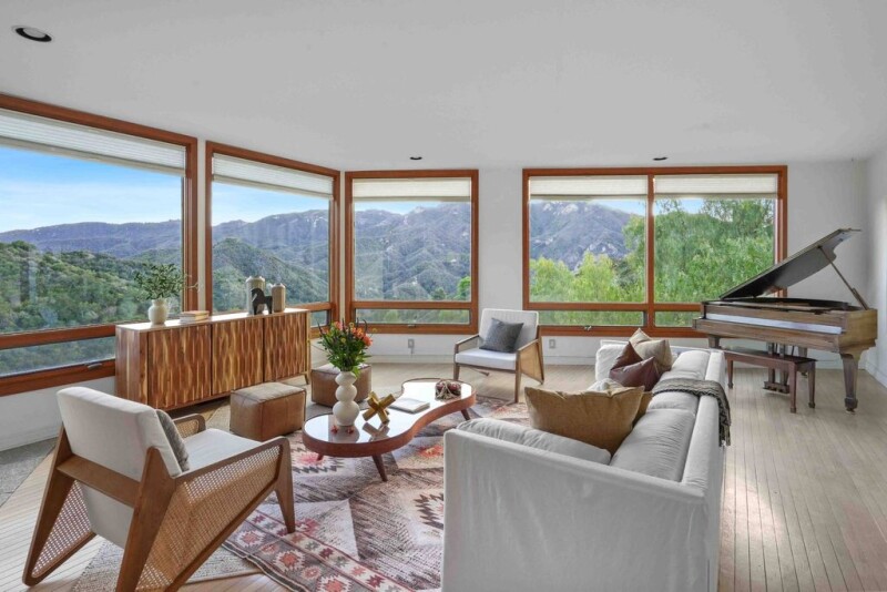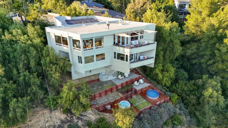 Perched at the top of Topanga Skyline Drive sits a magical architectural retreat with commanding views from every room. Main floor living, dining and kitchen with adjacent balcony create spaces for entertaining or just enjoying Life while overlooking Old Canyon below. Watch the fog roll over Saddle Peak while sipping your morning coffee as the hawks ride the wind currents right in front of you. Direct entry garage with an abundance of natural from the large picture windows and a roll up door has heat and air, creating an amazing multi-purpose room for pursuing artistic endeavors. And the fully owned solar system with back up battery helps offset electric bills and brings peace of mind. Downstairs you'll find the private living quarters, each with its' own balcony: The Primary Suite complete with walk-in closet, a shower with an astonishing view and a jetted tub, is a true sanctuary. Two additional bedrooms, the 3rd bathroom and the laundry area all accomodate a growing family, or provide work from home options. And for those with musical talents, there is a small, soundproof music studio below the house with its own entrance, complete with upright piano. This space could easily be reimagined as a media room, an art or exercise studio, or a home office. A large covered patio behind the house has room for dining and recreation. And the multi level terraces below create additional outdoor living spaces to relax and take in the view, with the stock tank pool and hot tub providing the perfect place to unwind at the end of a long day. This property could be your very own private wellness retreat and inspiring creative living space. Come relax and stay awhile..
