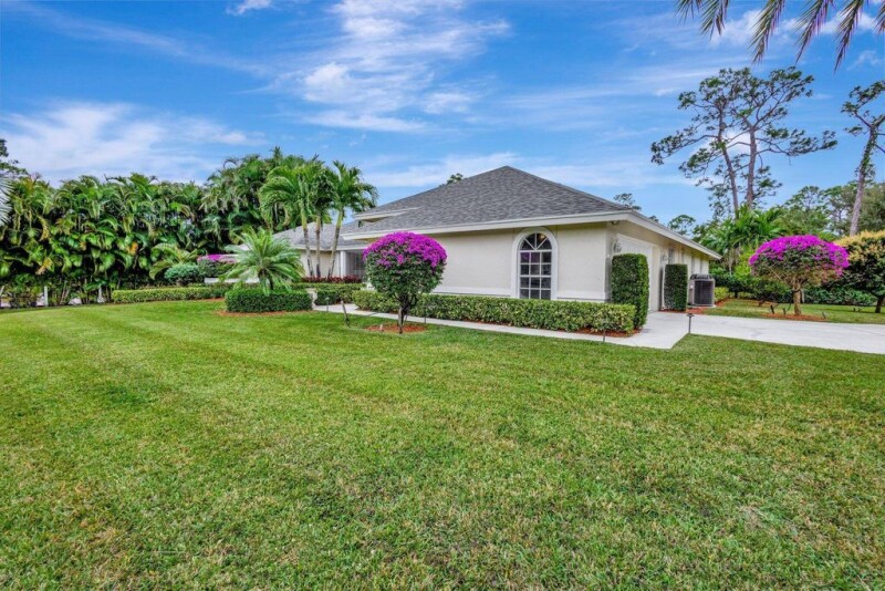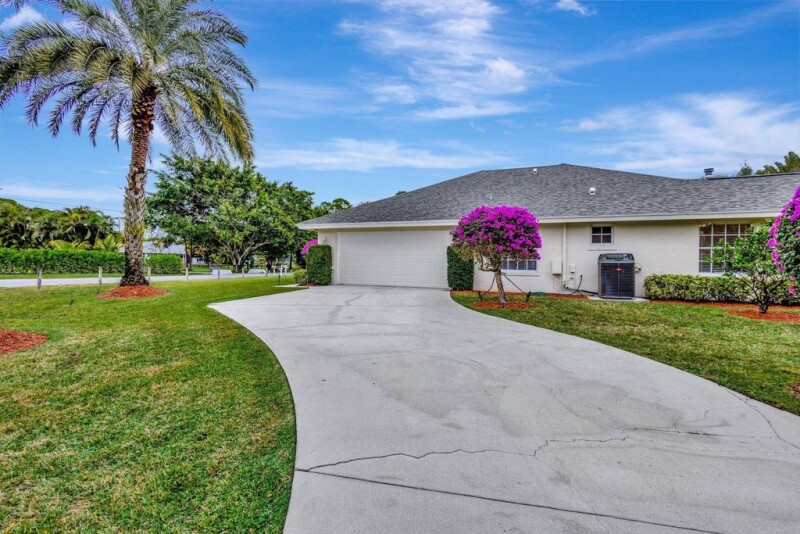 HOME IN JUPITER FARMS * 4-bedroom, 3-bathrooms 2 car garage 2600 sq. ft. with a 2024 NEW ROOF, tropical retreat on a professionally landscaped 1-acre + property paved roads. This home features a great floor plan, vaulted ceilings & abundant natural light, a spacious kitchen with new appliances, double oven, new flooring inside & exterior newly painted, primary suite with a spa-like bathroom. Three additional bedrooms (split floor plan) offers flexibility for family or work-from-home. Outside, enjoy lush gardens, a 25x12 ft patio & multiple versatile outbuildings, including a 35x35 detached workshop & three sheds for storage or hobbies /cars. This property combines comfort, functionality, & serenity, creating the perfect private oasis, fully fenced yard. A Rated Jupiter Schools.