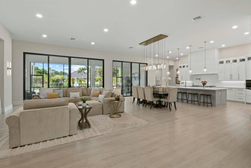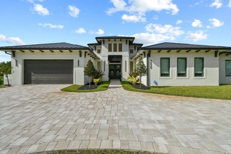 Welcome to a rare opportunity to own a truly exceptional brand-new 4,717 square foot estate home, built entirely of CBS construction with hurricane-impact windows and doors, located in the highly sought-after Palm Beach Country Estates. This architectural gem combines timeless elegance, modern innovation, and the highest quality craftsmanship.Step inside to find 12' ceilings in the main living areas and master suite, and a layout thoughtfully designed for both grand entertaining and everyday luxury. The gourmet kitchen is a chef's dream, featuring a 60'' Wolf range with French top, Sub-Zero 36'' paneled refrigerator and freezer, Sub-Zero wine column, and refrigerated drawers. A massive walk-in pantry with custom cabinets and quartz countertops adds convenience and sophistication.