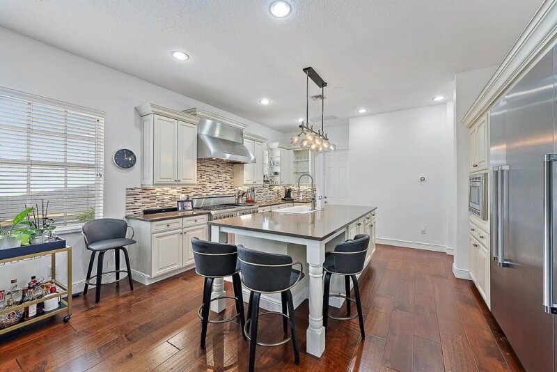 Welcome to your dream home in the sought-after Audubon Signature Sanctuary community of Evergrene in Palm Beach Gardens! This beautifully updated residence boasts 3 spacious bedrooms, 3 full baths, & an inviting layout perfect for both relaxation & entertainment. Enter through the foyer to be greeted by soaring cathedral ceilings & an abundance of natural light, highlighting the home's two distinct living areas & elegant formal dining room. The main level features a versatile den or home office, ideal for remote work or a cozy retreat. The chef's kitchen is a true masterpiece, complete with Thermador gas cooktop & refrigerator, a 50+ bottle wine refrigerator & spacious island with ample counter space. This kitchen is sure to inspire culinary creativity.