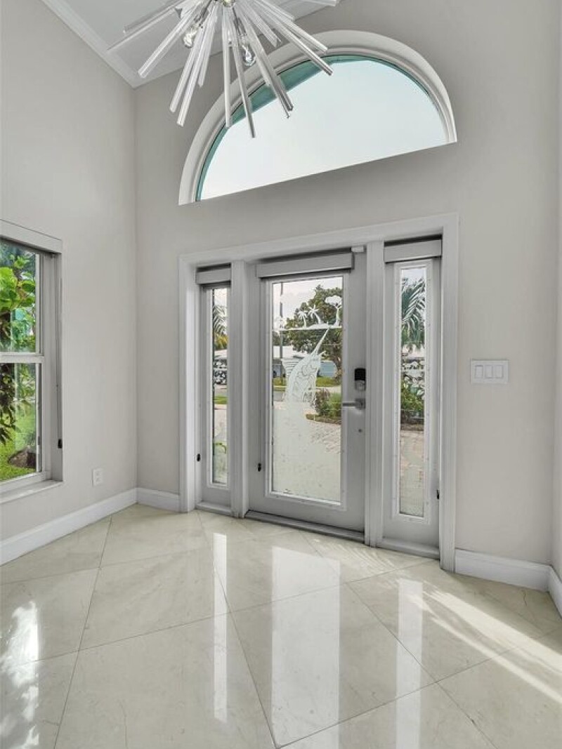 Stunning Waterfront Oasis nestled on a quiet cul-de-sac in the sought-after Garden Isles community, this move-in-ready 3-bed, 2-bath home w/ a 2-car garage is a true gem. Open-concept design with style & functionality in mind. Luxury, comfort & outdoor living. Elegant marble flooring & beautifully crafted marble fireplace. Modern, updated kitchen w/granite countertops, custom cabinetry & wet bar. Plantation shutters in bedrooms & custom blinds throughout the home. Spacious laundry room. Newly updated pool deck, a heated pool, & a spa, set in a large, private backyard perfect for relaxation & entertaining. Composite dock with a 10,000-pound boat lift, a floating dock for personal watercraft. H Warranty Hurricane-rated windows. Circular driveway. A waterfront retreat, elegant & functional!.