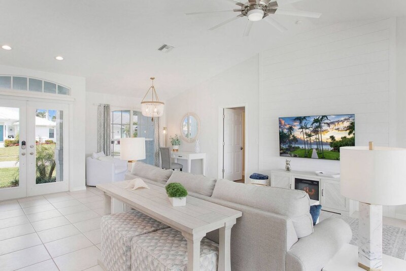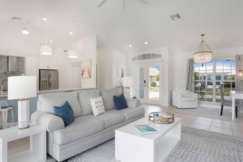 Discover your winter retreat at this beautiful waterfront residence on Marco Island, designed for those seeking a serene escape in sunny Florida. With three bedrooms and two full baths, this home offers an open, split floor plan that maximizes space and privacy. The heart of the home is the stunning remodeled kitchen, featuring elegant white shaker cabinets, gleaming quartz countertops and top-of-the-line stainless steel appliances. The wrap-around island with seating is ideal for casual dining and entertaining. The living area boasts high-volume ceilings and new hurricane impact sliders, allowing natural light to flood the space. The spacious primary suite has impact sliders that open to the lanai, a large walk-in closet, dual sinks, a soaking tub and a walk-in shower. The home includes many updates such as new lighting, electric and plumbing fixtures, and new landscaping (2024); the HVAC system with Wi-Fi thermostat is 2021, the water heater is 2022, and the interior and exterior paint was completed in 2022. The two-car garage has epoxy flooring and a built-in electric vehicle outlet. Step outside to your private lanai and soak up the Florida sunshine by the large in-ground pool. Boating enthusiasts will love the new 10,000-pound boat lift and quick access to the Gulf. The privacy fence ensures your outdoor oasis remains serene and secluded. In a prime spot, this home offers easy access to Resident's Beach, the new Publix, YMCA, and a variety of restaurants and shops. Whether you're looking for a relaxing retreat or an active lifestyle, this Marco Island gem has it all. Come relax and enjoy life in sunny Florida!.