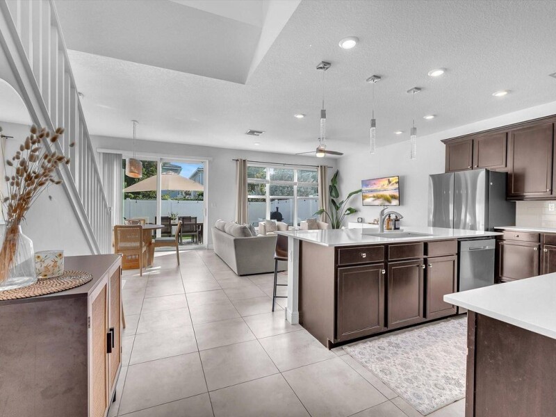 Discover modern living in this stunning corner townhouse, built in 2020 with high-end finishes and smart home features. This spacious home boasts high ceilings and abundant natural light, creating a bright and airy atmosphere. Enjoy peace of mind with hurricane impact windows and doors, durable PVC plumbing, two-car garage with extra storage and laundry room located on the 2nd floor for added ease! Step outside to your private, newly turfed backyard—perfect for grilling and entertaining or head over to the community’s brand-new clubhouse featuring a fitness center, kitchen, heated pool, playground and much more. With low maintenance fees and a dog-friendly environment, this home offers contemporary comfort in a prime location. Don’t miss this exceptional opportunity for a turnkey home!.