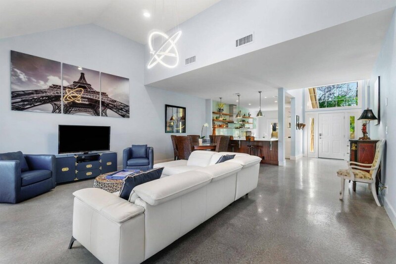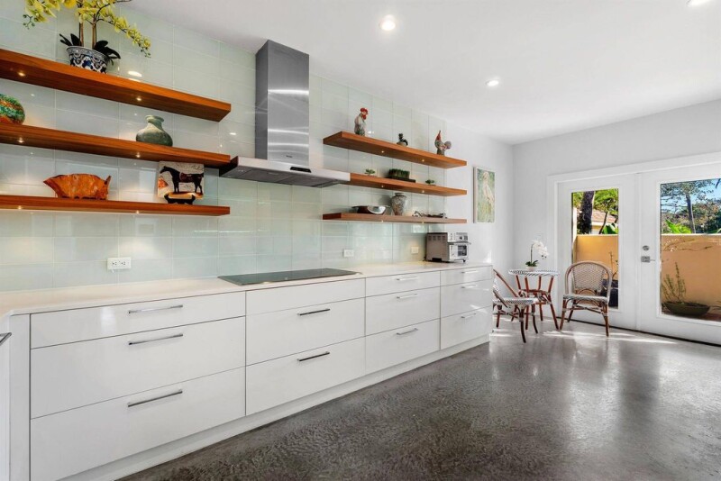 This Townhome's style & quality soars above all the rest!! Enjoy tranquil water views and tremendous natural light that filters into all corners of this single-story end unit. Every detail highlights quality updates and sophisticated renovations. The well-designed kitchen features robust Thermador stainless appliances, a wine fridge and stylish wood shelving with accent lighting that adds a Zen character to this space! Charming features continue throughout the home with 3 all-new Bathrooms, tasteful accent lighting and consistent, modern concrete flooring spans each room. Other benefits include 100% full Impact Windows & Doors that ensure peace of mind for safety and quiet ambience, a 50 AMP/220-volt Electric Car Charger, plus HOA Fees that cover building Insurance & roof maintenance.