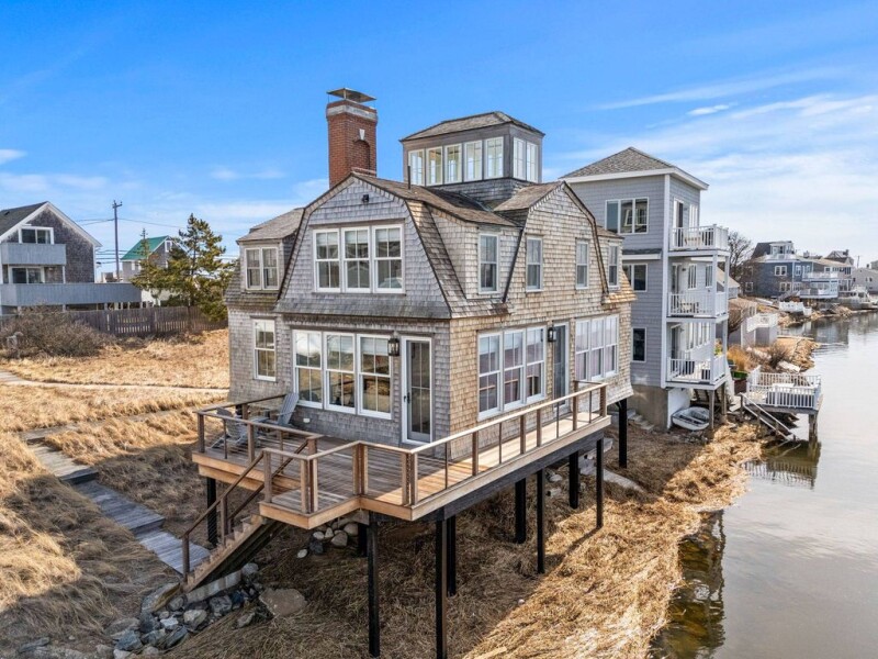 Introducing this stunning 4-bedroom home offering breathtaking, unobstructed views over Plum Island Basin. A slate-floored entryway welcomes you into an open-concept living space; maple hardwoods, propane fireplace & drenched with natural light. The living room showcases panoramic, west-facing views, seamlessly connecting to a gourmet kitchen/dining area equipped w/ quartz countertops, large island & top-of-the-line appliances. Enjoy the tranquility of the outdoors on the wrap-around deck, or refresh in the outdoor shower. The property boasts wood shingle siding in a natural hue, ample storage beneath the house & parking for 3 cars. Find serenity in the crow's nest w/ unparalleled views extending to the Atlantic Ocean and a refreshing sea breeze. Modern conveniences include 2 heating systems for optimal climate control, luxurious bathrooms w/ radiant heat & dedicated laundry room. Local amenities include the scenic Parker River National Wildlife Refuge & Newburyport's waterfront.