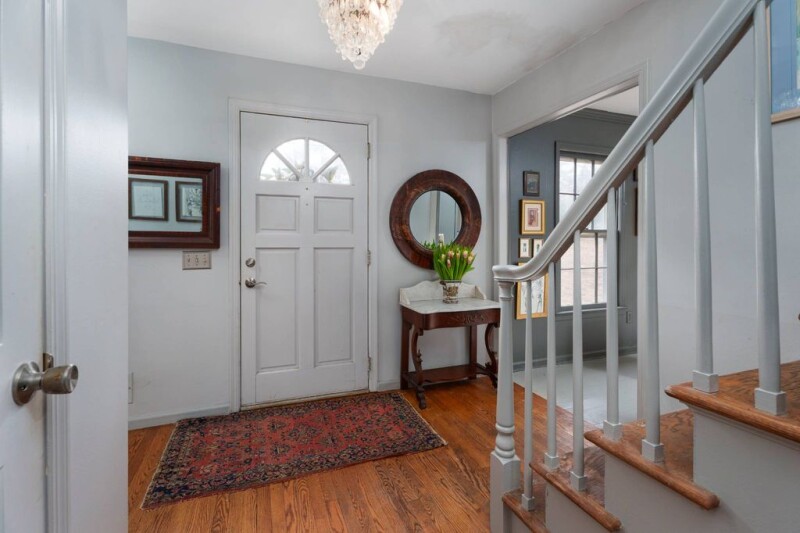 Nestled behind an evergreen hedge on over three-quarters of an acre, this colonial offers exceptional privacy. This Caldwell Park neighborhood boasts a S.T.A.R. registration (Sustainable, Together and Resilient) within the Littlebrook community. The home is also just a stone’s throw from the paths, fields and pond of Smoyer Park. Recreation amid the backyard’s mature trees and moments of downtime on the paver patio are remarkably undisturbed thanks to a rarely used stretch of road separating neighboring lots. Inside, beneath a 2022 roof and solar panels, time-honored elements, like hardwood floors and wood-burning fireplaces, set a traditional tone, allowing modern improvements and artistic touches to stand out. Most notable, a new streamlined open kitchen by interior designer Susanne Morgan features Samsung glass-panel appliances and Quartz countertops illuminated by ample recessed lighting. Built-ins and a window seat foster a cozy feel in the large adjoining family room. A large sunroom acts as a second family room with a wood accent wall always looks breezy and bright, but with both separate heat and A/C, it stays comfortable year-round. The living room can be a refined place to gather or a quiet spot to steal away. Likewise, the dining room is equally ready for special occasions, Sunday dinners and weeknight homework sessions. In the basement, you’ll find finished space for workouts or play, plus storage to supplement the 2-car garage. Upstairs, the main suite has a walk-in closet and three more corner bedrooms share a vibrantly tiled hall bath that is sure to energize everyone’s morning routine.