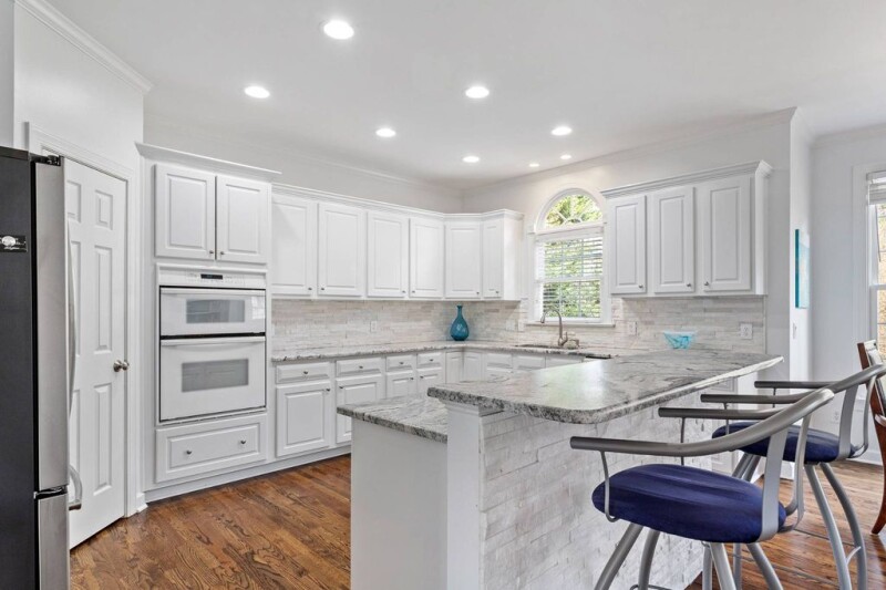 Welcome to the heart of Preston Village, a desirable community with its own pool, swim team, playground, sidewalks, and other amenities! Bathed in natural light, this artist-owned coastal retreat blends a serene neutral foundation with bold, expressive pops of color that bring the space to life. The stunning and spacious home exudes coastal charm with its open, airy layout designed for both comfort and elegance. This is an ENTERTAINER'S DREAM. Upon entering, you are greeted by a grand two-story foyer that flows seamlessly into the open living and dining areas. The gourmet kitchen features a large island, built-in desk, and generous breakfast nook. Overlooking the kitchen, the inviting family room boasts floor-to-ceiling windows, a cozy fireplace, and custom-built bookshelves. Beautiful hardwood floors run throughout the main level, adding warmth and sophistication. On the second floor, convenience meets functionality with a well-placed laundry room. Two of the bedrooms share a Jack-and-Jill bath, while a third bedroom enjoys a private en suite bath. The expansive primary suite is a true retreat, offering two walk-in closets and a spa-like bath. Steal away to the private office with its own balcony, secretly tucked behind the bathroom. The third floor features a voluminous bonus room or fifth bedroom, ideal for guests, an office, or a playroom. Despite its size, there is still unfinished space for storage. This home also features plantation shutters throughout and an enclosed four-season porch for year-round enjoyment. The original artwork, eclectic textures, and vibrant blues infuse the home with personality, while modern finishes ensure a fresh and timeless feel. Every corner tells a story—of creativity, coastal beauty, and an impeccable eye for color and character.