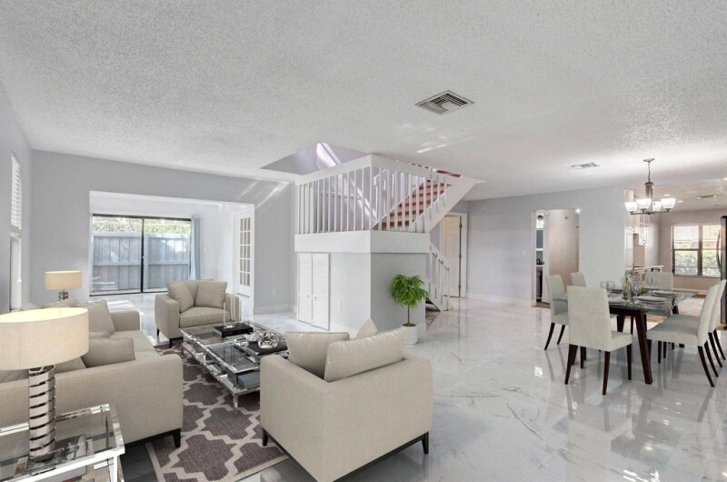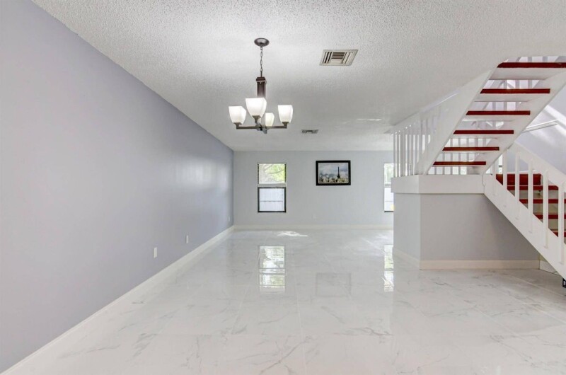 Renovated corner unit w/ a fenced backyard in a friendly community on a quiet cul-de-sac within the Wellington school zone. Light and bright floor plan with a bonus room on the 1st floor featuring a window, closet, and door--perfect as a 4th bedroom. Remodeled kitchen with granite countertops, upgraded appliances, and breakfast area. Upstairs has 3 spacious bedrooms, including a primary suite with a separate commode, shower, and a large walk-in closet. 2022 roof, 2020 water heater, and 2020 AC. Family room features large-format tiles, and the home includes a newer washer and dryer. Enjoy the front screened porch, large patio, and privacy garden. HOA fee of $1,366/QTR includes exterior insurance, community pool, driveway/sidewalk pressure wash, and scheduled exterior painting.
