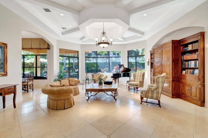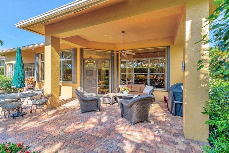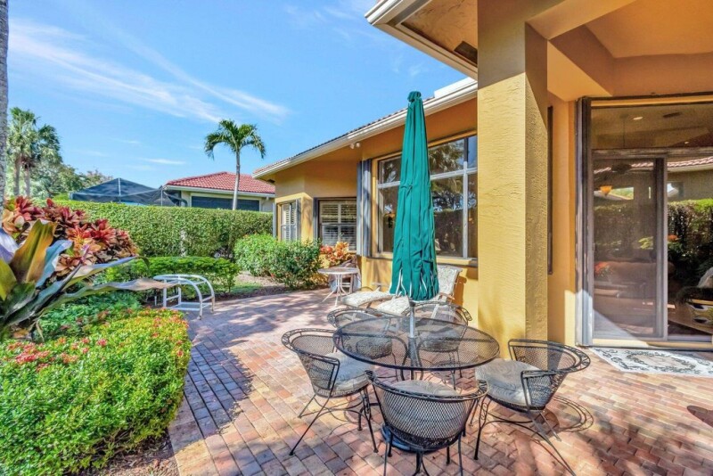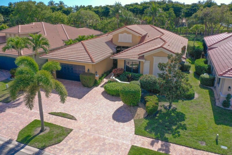 Step into sophisticated elegance with this highly sought-after Cabernet model, nestled in the exclusive estate section. Offering unparalleled privacy, the lushly landscaped backyard retreat with an extended paver patio is perfect for ''alfresco dining'' and South Florida living. A circular driveway and vibrant landscaping make a great first impression as you approach the home. Inside, you'll be greeted by high ceilings, an open layout, and a unique wagon wheel ceiling design in the spacious great room. Large windows fill the space with natural light and create a seamless connection to the outdoors. Top-of-the-line Jerusalem marble floors flow throughout the living areas, adding a touch of timeless sophistication.