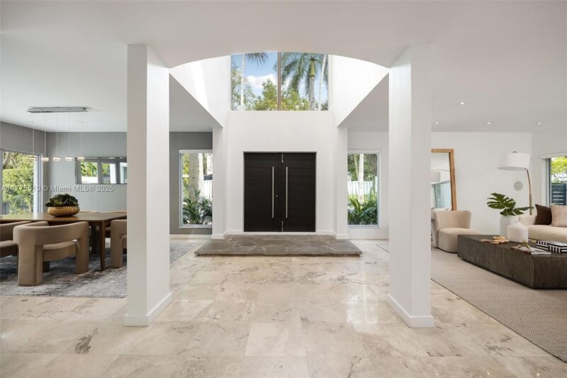 Spectacular, fully renovated turn-key home on a quiet, tree-lined North Grove street. (Located at the intersection of Crystal Ct. & Crystal Terr.) Walk or bike to the Grove village center’s boutiques, cafes and bayfront parks & marinas. Updates include new: roof, kitchen, 3 baths, 2nd level wood flooring, pool deck & landscaping. Dramatic double-height foyer opens to light-filled living spaces w/high ceilings & stone flooring. Stunning custom kitchen offers sleek, modern cabinetry, quartz countertops & high-end Bosch appliances. Luxurious primary suite w/ 2 custom walk-in closets & a balcony overlooking the tree tops. Enjoy outdoor living in the ultra-private walled garden w/ tropical pool. High sea-level elevation (not in a flood zone). Just minutes drive to Brickell, MIA & the Beaches.