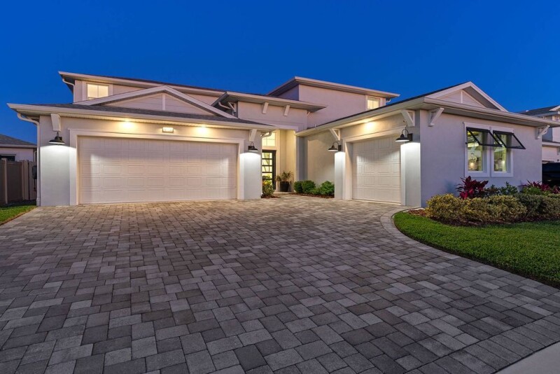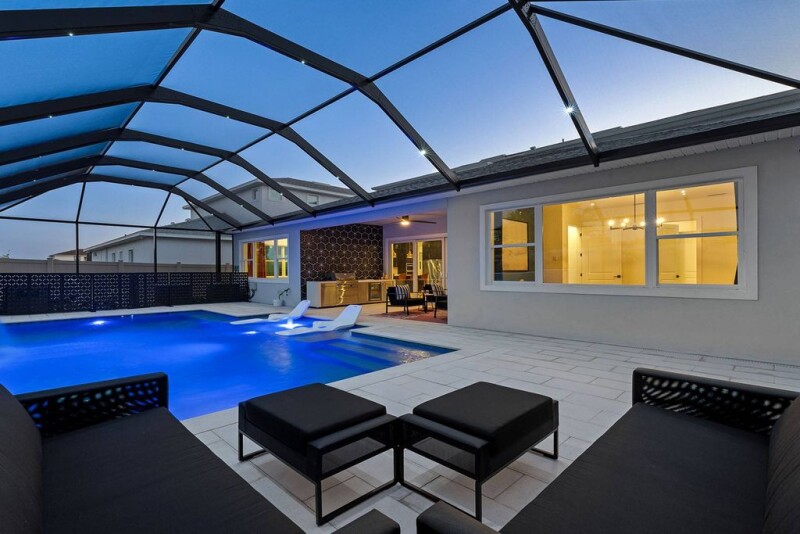 Pristine pool oasis in Robin's Cove of the Epperson Lagoon community. This stunning five-bedroom, three full- and two-half-bath, three-car garage pool home is a masterpiece of style and functionality. Step outside to your private resort-style backyard featuring a heated saltwater pool complete with a Badu swim jet for lap swimming, tanning ledge, captivating waterfall and fountain jets, and mesmerizing Nebula pool cage lighting, all enclosed by a stylish mosaic tile privacy wall. The heart of the home is the chef's kitchen, boasting level 4 quartz dual waterfall island, elegant maple cabinetry, dual built-in convection ovens with steam and proofing features, a convection microwave with broil, a gas cooktop, and a commercial-style Fisher & Paykel 60-inch refrigerator and freezer. A dedicated coffee bar pantry and expansive walk-in pantry provide ample storage. Entertain effortlessly with the outdoor kitchen, complete with a Mont Alpi outdoor grill, bar refrigerator and sink, accented by a custom tile backsplash. The primary suite is a retreat, featuring a tasteful accent wall, an oversized window, a large built-out walk-in closet, a frameless glass walk-in shower with rainfall feature, dual vanity and a separate water closet. Enjoy movie nights in the living room with a built-in 5.1 surround sound system. Additional features include dual AC systems, a built-out laundry room, a split three-car garage with four built-in overhead racks, UV protection film on windows, impact sliding glass doors, 10-foot ceilings, a water softener and filtration system, modern square baseboards, soft-close drawers, an upgraded builder option oversized window package, and a 50-gallon propane tank servicing the cooktop, grill and water heater. Epperson's famous crystal lagoon comprises 7.5 acres of clear blue water including sandy beaches, a swim-up bar, food trucks and various water activities. Epperson also showcases UltraFi, a community wide internet and cable experience, Streetleaf solar streetlights, golf cart paths and miles of trails. In the Robin's Cove neighborhood is Eagle Park which includes a community clubhouse, recreational trails, exercise stations, dog parks, playground and a dock for King Lake. This growing area is across the street from The Kirkland Ranch Academy of Innovation and new Kirkland Ranch K-8 School. Enjoy golf cart access to Publix and Starbucks while also conveniently less than five minutes from Interstate 75 providing ample shopping and dining options at the Tampa Premium Outlets, Shops at Wiregrass and Krate at the Grove.