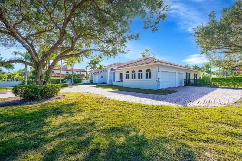 The perfect blend of space, privacy & prime location with this expansive 1.17-acre gated estate in one of Miami’s most sought-after neighborhoods. This Mediterranean-style 5-bedroom + den residence boasts 14-ft-high ceilings in common areas, impact windows throughout, & new HVAC units, ensuring comfort and durability. Designed for both elegance and recreation, the north/south-facing lot is planned to accommodate a tennis court or padel/pickleball, allowing all-day play. Generous driveway entry provides privacy, flexibility & ample room for parking, w/ a circular main driveway & separate parking area on the eastern exposure connecting to a three-car garage. With 5,011 interior SF, 7,036 total SF, & 15,395 SF of lawn space, this estate is primed to become your dream indoor/outdoor retreat.