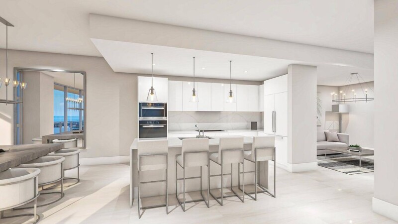 Nautilus 220 is a new luxe waterfront development under construction alongside a marina with 330 condominium residences in two, 24 story towers, a one-acre outdoor amenity deck, the SeaHawk Prime by David Burke restaurant, retail shops, a cafe and professional office suites. Everything you need in one place, resort-style living perfected. This unique floorplan is beautifully appointed with 10ft ceilings and hurricane impact glass, porcelain tile throughout, full Miele Appliance package, wine cooler, waterfall quartz kitchen island and countertops with European cabinetry, split-bedroom layout, oversized owner's suite with large bathroom featuring freestanding soaking tub, and large terrace with Northeast water view.