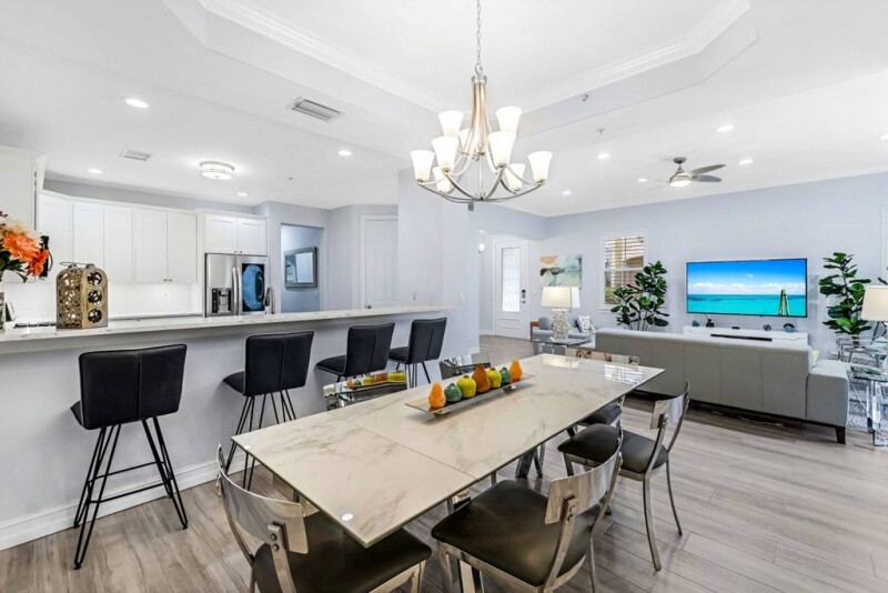 Step into this spectacular first-floor residence in the prestigious Tiburon community, where luxury and modern updates create a seamless, move-in-ready retreat! Beautiful plank tile flooring graces the entire condominium, setting a sophisticated tone throughout. The exquisite kitchen impresses with sleek quartz countertops, center island, a wraparound breakfast bar, recessed and under-cabinet lighting, soft-close doors and drawers, and a walk-in pantry for added convenience. Both baths boast matching quartz countertops, enhancing the property's cohesive elegance. The spacious primary suite offers a walk-in closet, dual sinks, a large tile walk-in shower, a relaxing soaking tub and glass block windows that flood the space with natural light while maintaining privacy. Step out onto the expansive lanai, where lush landscaping and scenic preserve views await, creating a serene outdoor oasis. This property also includes a two-car attached garage, complete with epoxy flooring and built-in cabinetry. Living in Tiburon is unique, with access to the world-renowned 36-hole Greg Norman-designed golf course, managed by Troon and host to annual PGA and LPGA events. The community also features an exclusive Ritz-Carlton resort, complete with multiple waterslides, a lazy river, and a poolside bar and grill. Further perks include transportation to Vanderbilt Beach, access to a breathtaking Mediterranean-style 27,000-square-foot clubhouse, reciprocal Troon privileges, spa services, a state-of-the-art fitness center, tennis courts and a golf simulator. Indulge in the ultimate luxury golf lifestyle at Tiburon. Memberships are optional but not mandatory.