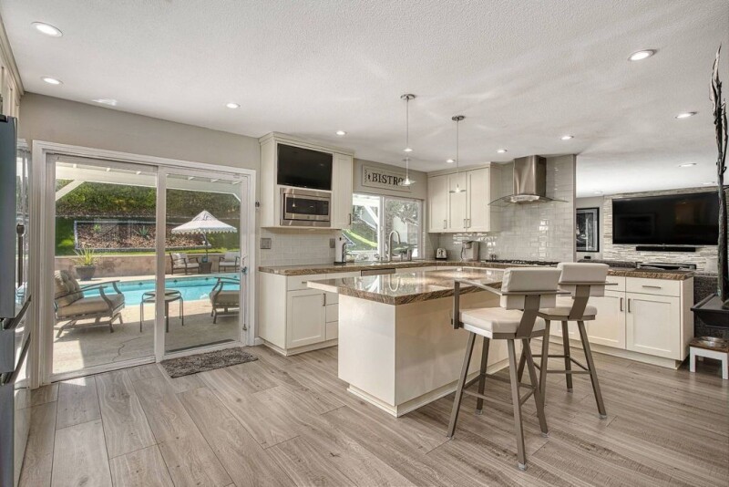 Beautifully remodeled pool estate on expansive grounds. Separate, private, gated driveway with large concrete pad for a guest house or ADU. Solar heated redone 40' pool and new pool equipment. Expanded Chef's kitchen with large stone island and newer stainless-steel refrigerator and dishwasher. Open floor plan offers first floor bedroom with private bath. Kitchen opens to family room with fireplace and oversized sliders leading to the pool. Huge LR and DR with another FP, has newer slider that opens to the backyard. All new bathrooms and new flooring throughout. Primary bedroom retreat has a new resort like bath with freestanding tub, oversized shower, double sinks and built in TV along with two new custom walk-in closets. New vinyl fencing, new HVAC, two newer Hot Water Heaters, newer window treatments, all new artificial turf in the entire backyard and front yard. Charging stations in both the garage and second driveway.