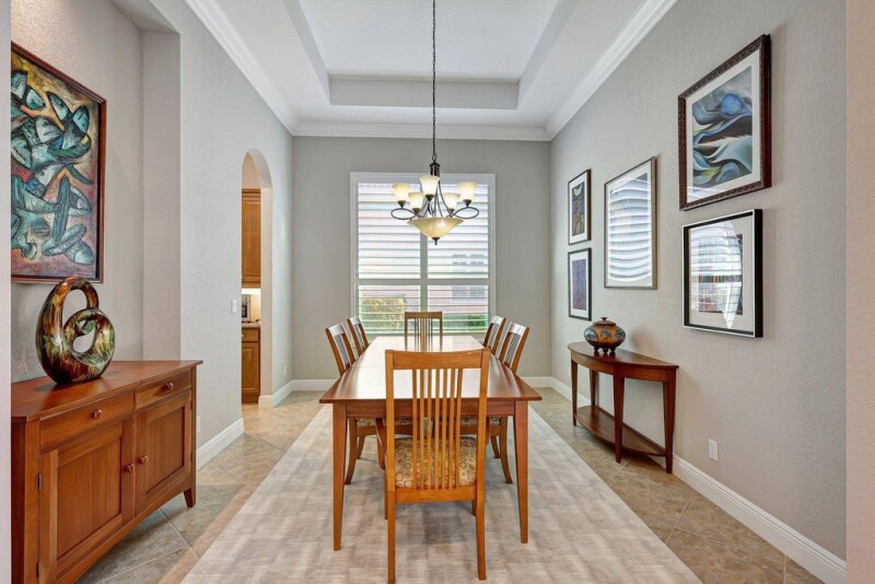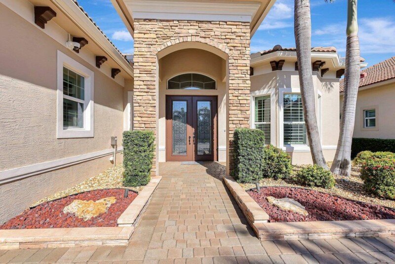 Live and work in paradise. Discover luxury living in the exclusive gated community of Verano. This immaculately maintained 3-bedroom, 3.5 bath + den home has a thoughtful floorplan with spacious living room, formal dining, kitchen with gas cooktop, island, breakfast area. Custom built-ins in the den and guest bedroom create stunning and functional office spaces. Seller may offer $3K credit if buyer wants to remove built-in cabinets in guest room. Enjoy a tranquil view of the PGA golf course, outdoor living with a screened porch with grilling area. Plus a 3-car garage, impact glass, generator. Resort-style amenities: a grand clubhouse with game/hobby rooms, indoor/outdoor pools, state-of-the-art fitness centers, tennis, pickleball, playground, dog park, and cart path to PGA course.