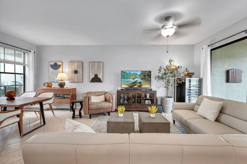 Are you searching for a stylish, move-in-ready home with peaceful lake views and nightly sunset backdrops≠ This beautifully maintained three-bedroom, two-and-a-half-bath residence in Summit Place offers western exposure and a private screened lanai, ideal for enjoying tranquil water views and evening skies in total comfort. Step inside to a freshly painted interior featuring diagonal tile flooring throughout the main living areas and a functional layout designed for everyday living and entertaining. The open kitchen boasts white shaker-style cabinetry, granite countertops, tile backsplash, a walk-in pantry with shelving and stainless steel appliances, including a range, microwave, dishwasher and refrigerator with icemaker. A formal dining area and living room with glass sliders opening to the lanai make indoor-outdoor living effortless. The lanai itself features tile flooring, a ceiling fan and covered outdoor living space, creating the setting to unwind. Upstairs, the owner's suite is a peaceful retreat with a tray ceiling, arched walkway and mirrored closets. The en-suite bath is thoughtfully appointed with a dual-sink quartz vanity and a walk-in shower with floor-to-ceiling tile and glass enclosure. Two guest bedrooms, one featuring custom wall trim, are near a full bath with a shower-tub combo, offering comfortable accommodations for family or guests. A convenient powder bath is on the main floor. Centrally near Founders Square, a vibrant dining and retail destination, and just minutes from Gulf beaches, Mercato, downtown 5th Avenue, Interstate 75 and Naples top-rated schools, this home is positioned for year-round enjoyment. Low HOA fees provide access to a wealth of amenities, including a 24/7 guarded gatehouse, community pool and hot tub, tennis, pickleball, basketball courts, clubhouse, fitness center, saunas, barbecue areas and playground. Offering a blend of comfort, convenience and an unbeatable location, this home is ready to welcome you to the Naples lifestyle. Schedule your private tour today.