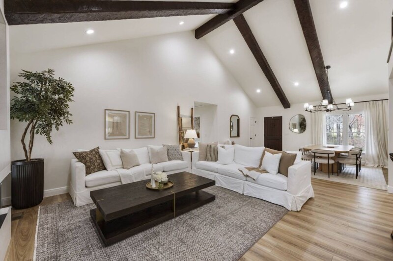 This completely renovated ranch home sits on 3.18 flat acres, blending modern updates with timeless charm. The striking white brick exterior, black window casings and silicate paint give the home a classic yet contemporary curb appeal. Inside, the main living area has been transformed with a vaulted, beamed ceiling and lofted space above, creating an open and airy atmosphere. The open-concept, custom European kitchen is a chef’s dream, featuring quartz countertops, an oversized island with seating, cabinetry to the ceiling, an elongated picture window and stainless steel appliances – including a 48 inch induction AGA Mercury range and hood custom ordered from England. The kitchen flows seamlessly into the vaulted fireside family room and dining area, making it perfect for both everyday living and entertaining. The main level offers a spacious primary suite with a walk-in custom closet and a luxurious bathroom, complete with marble tile, a large vanity with storage, a seamless glass shower and a separate soaking bathtub. Two additional bedrooms share a beautifully updated full hall bathroom with a soaking bathtub, a seamless glass shower and large vanity. The main level also boasts a laundry room, a convenient mudroom and a half bathroom with marble floors. Upstairs, a bonus room provides flexible space for an office, playroom or media area. The finished terrace level expands the home’s living space, featuring a private exterior entrance, a second kitchen, a full bathroom, a bedroom (no closet) and additional storage. Outdoor living is equally inviting, with a covered front porch, a screened-back porch leading to an extended open-air deck, and stairs to the expansive backyard for acres of play or serenity. Additional highlights include Karastan LVP flooring and custom paneling and woodwork throughout. Located in an award-winning school district of Free Home Elementary School, Creekland Middle School and Creekview High School and just minutes from shopping, restaurants and GA 400, this home also benefits from low Cherokee County taxes and a senior tax discount. Best of all, there’s no HOA!.