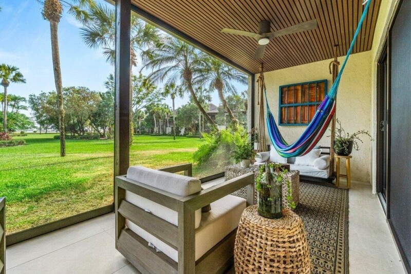 This bright and inviting ground-floor corner condo offers a rare opportunity to own a renovated 3-bedroom, 3-bathroom residence in the desirable Polo Club. Designed with a 3-way split floor plan for ultimate privacy, each bedroom features an ensuite bathroom and private access to a garden, screened porch, or patio. A standout feature of this unit is the third bedroom, which has its own entrance, ideal for in-laws, guests, or a trainer. Enjoy numerous upgrades, including impact glass windows and doors, electric shades, a fully integrated smart home system that allows you to remotely control lighting, audio, the thermostat, and home access, as well as a newly installed roof. The outdoor porch, enhanced with retractable screens, offers unobstructed garden views for a peaceful retreat.
