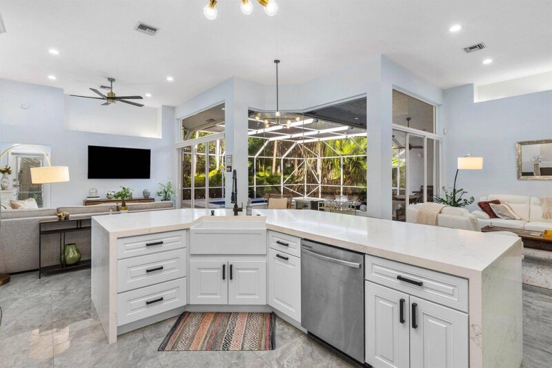 Fully renovated one story home nestled on a quiet private lot in a gated community. This home has a newer roof (2019), has been updated with modern finishes and features, including brand new impact windows throughout. Home has a triple split floor plan designed for comfortable living. The spacious living areas flow seamlessly into a gourmet kitchen, perfect for both everyday living and entertaining. Elegant flooring, high-end fixtures, renovated laundry room, A/C (2021), Water heater (2019), and a newly renovated screened in pool with spa. Enjoy complete seclusion and relaxation with lush landscaping and serene surroundings that create the perfect oasis. HOA includes security gate, cable, internet, irrigation, and Mission Bay resort like amenities.