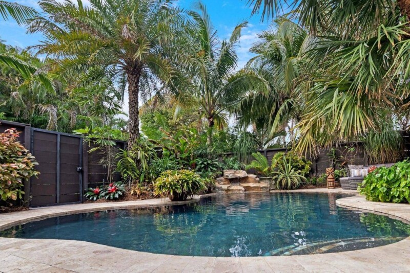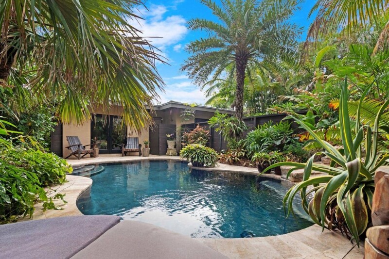 Welcome to the personal resort of your dreams! Wake in your private tropical oasis, enjoy the beach a 1/2 block away, lounge by the waterfall of your saltwater lagoon pool & entertain in your backyard living/dining paradise! Impeccably designed 2/2 plus office & cozy 1/1 guest house fully remodeled in 2018. Attention to every artistic detail. Chef’s kitchen with 6 burner gas cooktop, double ovens, wine cooler, pot filler & luxury fixtures. Breathtaking fireplace. Solid oak floors, impact windows, custom closets, designer shades & new aluminum roof/electric/plumbing (including underground)/HVAC. Whole-property gas generator, jaw-dropping landscaping, outdoor shower, & new pavers/irrigation/landscape lighting/mosquito spray system. Guesthouse perfect for vacation rentals or envious friends.