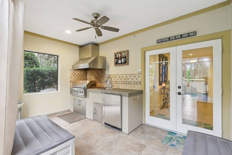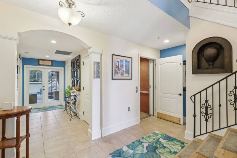 Elegant Three Story Villa with Private Elevator, Custom Wine Cabinet and Scenic Views. Welcome to 165 Augustine Island Way, this former model is an exceptional three bed, three and a half bath villa in the prestigious Palencia community of St. Augustine, FL. This 3,406 sq. ft. residence, built with fourteen inch poured concrete walls, offers a perfect blend of sophistication, modern luxury, and comfort. The gourmet kitchen is designed for both function and style, featuring gas cooking, granite countertops, upgraded appliances, and ample cabinetry, ideal for culinary enthusiasts and entertaining. The living room boasts dramatic ceilings and custom built ins, creating a refined yet inviting atmosphere. A private elevator provides seamless access to all three levels for ultimate convenience. The downstairs bedroom, currently used as a media room, is equipped with a Murphy bed and a custom 102 bottle Miele wine cabinet, perfect for wine collectors. A whole home water softener system ensures premium water quality, while a whole house generator provides peace of mind. Step outside to a screened-in outdoor retreat, complete with a summer kitchen and a cocktail spoola unique spa/pool hybrid designed for relaxation and entertaining. Three private verandas offer stunning golf course and pond views, providing tranquil spaces to unwind. As a resident of Palencia, enjoy world class amenities, including a state of the art fitness center, tennis and pickleball courts, swimming pools, walking trails, and championship golf course.