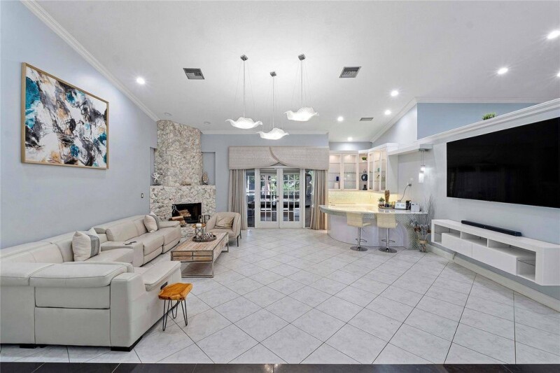 WOW! This custom-built Cypress Isle pool home has it all! Oversized Corner Waterfront Lot!! Stunning 4 bedrooms, 3.5 bathrooms, plus a den, loft, and office. Incredible designer interior with a spacious living room featuring a stone fireplace and a fabulous custom bar—perfect for entertaining! Gourmet island kitchen with top-tier appliances, granite counters, stainless steel appliances, and custom wood cabinets. Updated bathrooms, 3 newer A/C's, 2018 and 2019 units . Hurricane accordion shutters and a smart alarm security system. The backyard is a private waterfront oasis with a rare 50-foot covered patio, custom outdoor kitchen with BBQ, and amazing water views! Oversized circular driveway, no HOA!!, and an oversized lot. A truly one-of-a-kind home!.