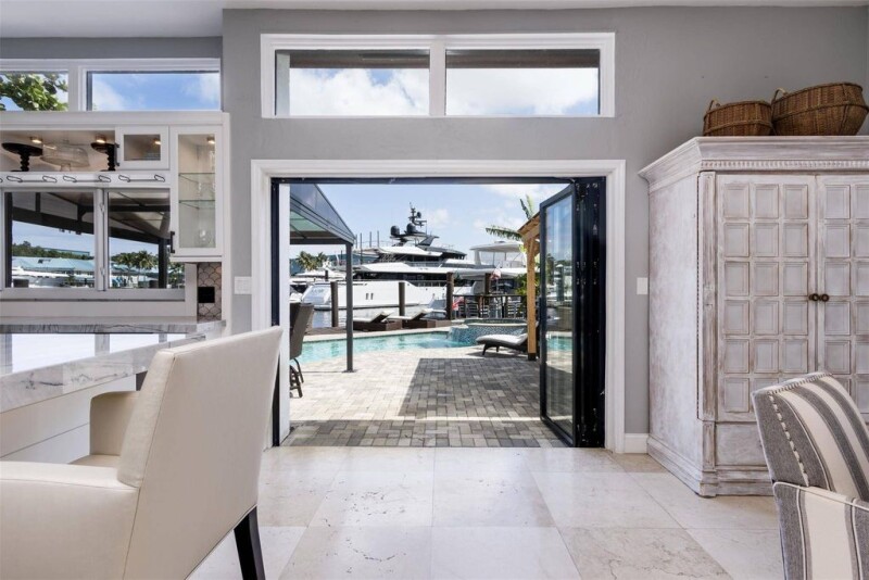 Showings Avail 3/16-17, 3/28-29 text/call for times**CHECK OUT WALKING VIDEO TOUR** Amazing views! New River, across from Marina, 70 ft waterfront, no fixed bridges, wide turning basin, hurricane safe/evac area for yachts. This beautiful modern home has 4 Bedrooms, 4.5 Baths, a separate office, In-Law Suite, 2 laundry rooms, 2-car garage. 2 Bedrooms are en-suite. One Bedroom/Bathroom located in attached In-Law Suite, which includes a Kitchenette and living space, perfect for multi-generational living, teen-ager, etc. Entertainer’s dream home has newly updated gourmet kitchen w/Quartzite Counters, icemaker, and beverage fridge. Heated pool/spa w/lights/jets operated by phone. Shady Banks, a popular neighborhood with Hortt Park, Over 100K worth of upgrades to the home. Minutes to the beach.