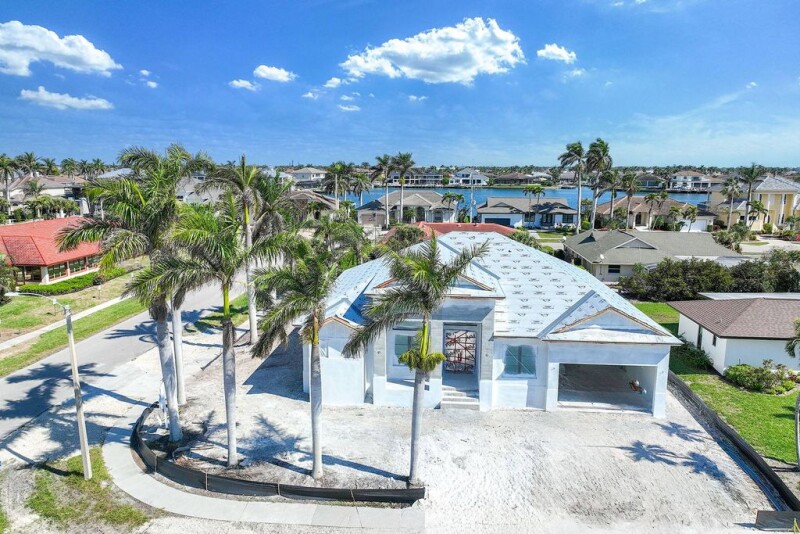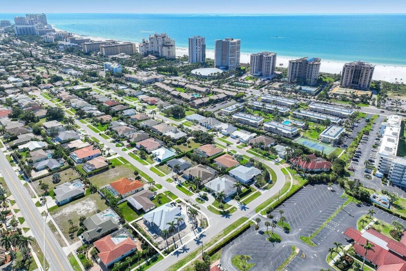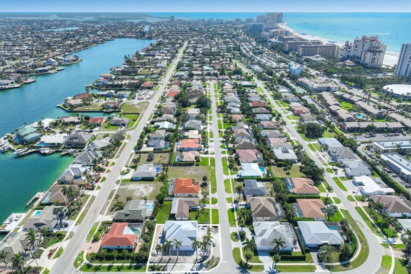 Impressive coastal contemporary new construction only blocks from Residents' Beach. Expansive great room with open concept, gourmet kitchen with shaker cabinets, shadow boxes above, quartz countertops, dry bar and crown molding throughout. Over 2,500 square feet, five bedrooms and four baths. With 12-foot ceilings with double tray to peak of 14 feet. Shaker cabinets with quartz tops in all baths and laundry room. Spacious primary suite has two closets, soaking tub and separate shower. Wood plank porcelain tile throughout. Hurricane windows and doors. Metal roof. Inviting pool and cascading spa surrounded by marble tile lanai. Custom outdoor kitchen includes built-in grill, counter refrigerator, custom exhaust fan encased in stucco, sink, and granite countertop. Epoxy garage floor. Paver stone driveway. Excellent rental potential! Rendering is similar to finishes but not exact. Anticipated completion, spring 2025.