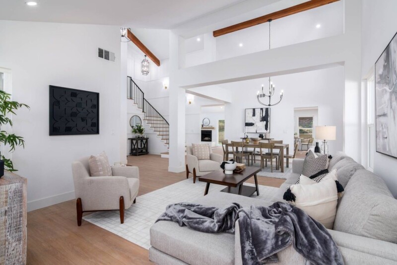 Experience the perfect blend of luxury and comfort in this meticulously remodeled two-story home, tucked away in a tranquil cul-de-sac near Shadowridge golf course. With three spacious bedrooms, including a main level primary suite and an attached two-car garage, this home offers both style and practicality. A grand double-height entry sets the tone for the home’s refined design, showcasing a striking staircase, contemporary light fixtures, and exposed wood ceiling beams. An open-concept living and dining area feature soaring ceilings and plenty of natural light, creating a bright, inviting space. The kitchen is a striking blend of style and function, featuring crisp white shaker cabinetry and bold black quartz countertops that extend seamlessly to the backsplash and a stylish accent shelf. This design creates both a functional workspace and a chance to showcase your personal style. An oak-toned center island adds warmth to the space, offering additional cabinet storage and a casual seating area perfect for gatherings. The adjacent family room, centered around a cozy fireplace, offers direct access to the private backyard, featuring a beautifully landscaped patio ideal for outdoor entertaining. Your main floor primary suite offers a peaceful retreat with vaulted ceilings, a spacious walk-in closet, and sliding door access to the serene backyard. Its spa-like en-suite bath boasts dual vanities, a glass-enclosed shower with a built-in bench, and high-end fixtures, creating a luxurious, relaxing environment. Additional features include a dedicated laundry room, a new roof, a new HVAC system, and modern finishes throughout. Located in a desirable neighborhood with easy access to parks, walking trails, top-rated schools, and upscale shopping, this home offers both convenience and luxury. Don’t miss the opportunity to make this stunning, move-in-ready home your own!.