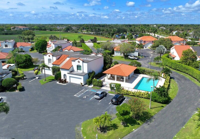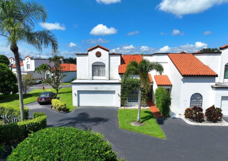 Right around the corner from the horse shows and restaurants! This end-unit townhome is located in the desirable community of Wellington Place and within a very short distance to WEF, Global Dressage and NPC! Featuring over 2,000 sq ft of living space with 4 bedrooms, 3 full and 1 half bathrooms, 2-car garage, and a private covered patio and small yard. The split floorplan offers the primary bedroom and bath on the first floor, plus a half bath. The second level hosts 2 bedrooms that both has full on suite bathrooms (unique for these townhomes), and a smaller room that can be used as a bonus bedroom or an office. This home exudes a sense of spaciousness and comfort, featuring soaring vaulted ceilings with recessed lighting.