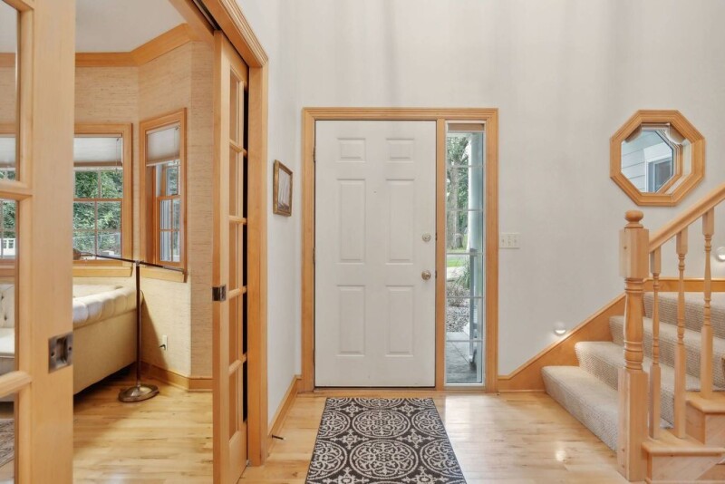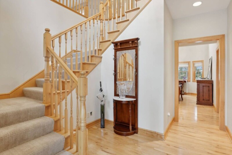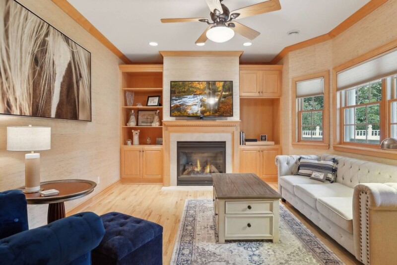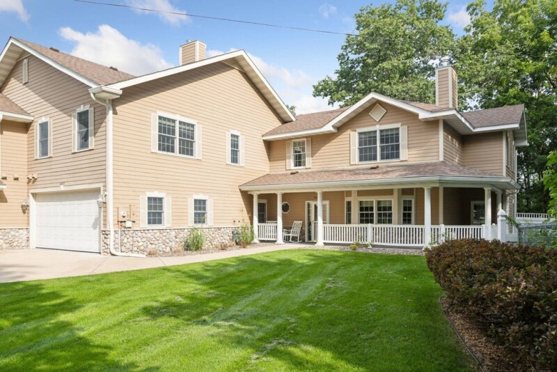 Welcome to this charming tucked away townhome surrounded by mature trees just steps from White Bear Lake, Memorial Beach, and Lake Avenue! A short stroll into historic downtown White Bear Lake offers you quaint shopping, dining, and lake entertainment. This spacious four bed, four bath, two car home is built on a slab, with an abundance of storage. Enjoy main level living in this light filled home with vaulted ceilings and high-end finishes. This lovely home offers an abundance of natural light and upon entry, a cozy living room/library with fireplace greets you. The first-floor primary bedroom with ensuite private bathroom offers a separate tub and shower and private access to the wrap around porch. Enjoy food prep in the large chef’s kitchen with center island and meals in the dining room that can accommodate generous gatherings. The first floor is finished off with a guest half bath and convenient laundry room. The upper level offers another great living space with the 2nd primary suite and two additional generously sized bedrooms with a full bath. The upstairs family room with fireplace is ideal for entertaining. The partially fenced yard provides privacy for enjoying summers on the back patio. Sit on the lovely wrap around porch with views to the charming park across the street. This maintenance free living home in desirable White Bear Lake is a must see!.