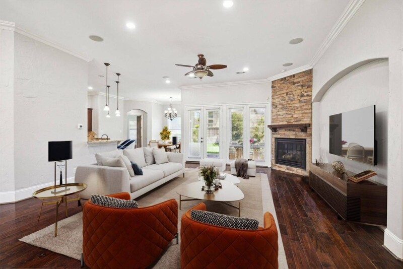 26214 Kingsgate is an exceptional property situated in the gated section of Woodcreek Reserve and zoned to Katy ISD. Built by Statley Homes, this home features 4 bedrooms, 4 full baths, 1 half baths, and a whole home generator. Experience effortless entertaining in an open concept layout featuring a gourmet kitchen with dark cabinets and granite countertops. Relax in the family room by a cozy fireplace while enjoying views of your private backyard sanctuary. Retreat to the primary suite, where soaring ceilings and abundant natural light complement a spa-inspired bath complete with a walk-in shower and jetted tub. Its unique 1.5-story design offers remarkable flexibility, seamlessly blending the convenience of a single-story layout. New windows were installed in June 2024, for efficiency . Every detail is designed to create a harmonious blend of community, comfort, and exceptional amenities, making it the ideal place to call home.