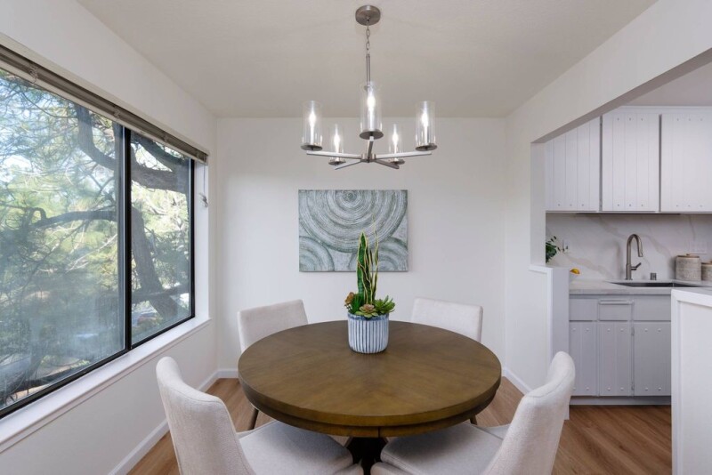 Enjoy fabulous canyon views from this updated one level condo located in quiet, yet convenient Brittan Heights. The bright, spacious living room opens to a private balcony and the adjacent dining area. The recently updated kitchen has quartz counters and new appliances. The hall bathroom has new lighting, quartz counters and new flooring. The spacious primary suite has a wall of closets, attached bathroom with quartz counters, new flooring and shower. Easily accessible with no steps between the covered carport and the entry this home is convenient to parks, hiking, biking, schools, 280 freeway and many top Silicon Valley employers. New flooring, forced air heat, extra storage, inside full sized laundry room and a one car carport complete this move-in condition home. Community amenities include tennis courts, pool, clubhouse and a playground. Top rated San Carlos schools.