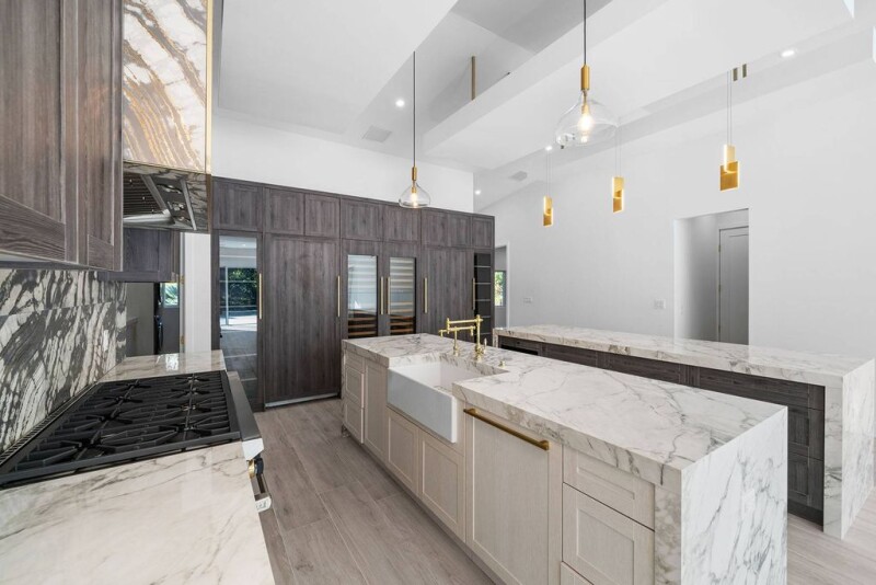 Welcome to this exceptional remodeled estate, perfectly situated on just under 3 acres in the highly desirable Golden Gate Estates west of Collier Boulevard. This sophisticated residence combines luxury, space and tranquility, all within proximity to Naples' beaches and I-75. Step inside to discover an elegant open-concept layout designed for comfort and functionality. The chef's kitchen is a culinary masterpiece, featuring a Wolf gas stove, high-end appliances, dual islands and abundant cabinetry. A wine refrigerator and large full separate refrigerator-freezer are an excellent upgrade. Adjacent, a spacious pantry and fully equipped laundry room offer ample storage space. This home offers three generously sized bedrooms, each with walk-in closets and en-suite baths boasting both soaking tubs and showers for ultimate relaxation. The primary suite is a standout, featuring custom lighting and a spa-like atmosphere that serves as the perfect retreat. The office or den is the perfect work-from-home space! This expansive property provides excellent indoor-outdoor flow, lush landscaping with fruit trees, and pass-through access to Green Boulevard for convenient entry and exit. With nearly 3 acres of land, the estate offers incredible business potential, whether for a home-based venture or other opportunities, while maintaining its serene ambiance. Experience the perfect blend of privacy, sophistication and versatility in this extraordinary Golden Gate Estates residence.