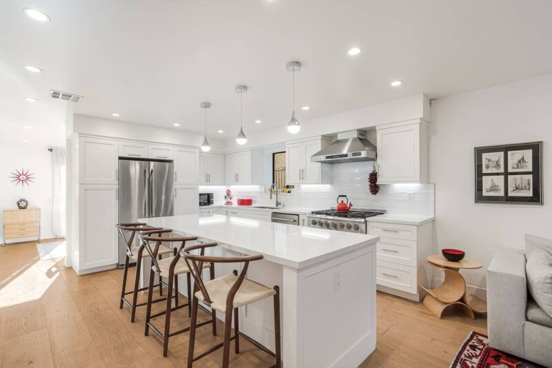 Discover this beautifully renovated and upgraded 4-bedroom, 3-bathroom urban oasis for sale in the highly sought-after Franklin Hills neighborhood. Nestled among matured trees on a tranquil cul de sac, this home features a soaring living room with a fireplace, wide-plank European Oak hardwood floors, a formal dining room with a private balcony, and an open great room. The chef's kitchen is equipped with custom cabinetry, stainless steel appliances, a wine fridge, and a stunning quartz island, perfect for entertaining. Enjoy outdoor living in the lushly landscaped backyard, complete with a jetted spa, al fresco dining deck, and terraced gardens with herbs and fruit trees. There are three bedrooms upstairs. The primary suite offers an abundance of soft natural light, a custom walk-in closet, and a luxurious ensuite bathroom with double sinks and a large shower. Relax on the beautifully tiled balcony to read or simply enjoy the lovely scenery, changing colors of the sky during sunset, and sparkling city lights at night. Additional features include an attached 2-car garage with direct kitchen access and ample storage. The house was substantially remodeled in 2020-2021. Current owners further improved the home with numerous system upgrades, including new roof, upgrading electric panel to add 220V in garage, relining & redirecting the sewer line, enlarging the backyard patio, etc. It is located in the Franklin Avenue Elementary School district and just minutes from popular supermarkets, shops, restaurants, the Metro System, and Sunset Junction, with easy access to DTLA, Los Feliz, Glendale, Silverlake Reservoir, Runyon Canyon, and Hyperion Village.