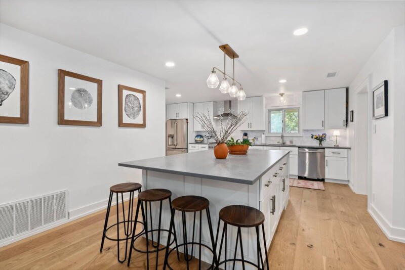 Welcome to this stunning, fully updated home where every detail has been thoughtfully designed to blend modern convenience with timeless charm. Nestled in a beautiful landscaped corner lot, this property boasts a comprehensive list of of interior and exterior enhancements, making it truly stand out. Interior highlights include elegant, engineered solid wood flooring along with new baseboards & trim. (This includes all door and window trim) The new contemporary look comes with Level 5 Drywall smooth finish & fresh paint. A redesigned layout featuring new GE Cafe appliances, a spacious kitchen island, custom cabinetry, quartz countertops and handcrafted ceramic tile backsplash. You will love to entertain with the new stylish Dry Bar Addition with wine fridge. Fully updated baths, smart and secure entry and a total home electrical overhaul. Installed fiber internet and removed antiquated wiring. You will enjoy the skylights in the living area along with the modernized existing fireplace. Outdoor living is exceptional with a fully replumbed, replastered and retiled swimming pool. New electrical wiring, powder-coated fences and freshly installed backyard sprinkler system. You will love to pick up your fresh eggs in the mornings from your chicken coup while the children are enjoy the playhouse. The backyard shed is wired with electricity, perfect for a workshop or extra storage. Landscaping includes native, drought-tolerant plants, St Augustine sod, and garden beds. This one story home has it all! There are so many updates I have placed an upgrade list in documents! This home is truly move-in ready , offering the perfect blend of modern upgrades, functional living spaces and outdoor charm. Don't miss this opportunity to make it yours!.