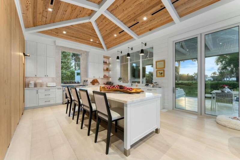 This amazing house overlooks the 15th and 16th fairways. Walk to the beach and Beach Club. Private pool and patio are on pilings and a slab elevation of 9.5′ above sea level. Concrete construction on the first and second floor. All interior walls are insulated. Icynene roof insulation, All natural stones in the kitchen and bathrooms. Other features include: Control4 system for lighting, shades and a/v - downstairs, Air conditioned garage, garage ceiling 13 feet to accommodate car lift. Three tankless gas water heaters. Whole house water filtrations system, Heated European knife edge pool. Fire bowls in the backyard with outdoor fireplace. Built-in gas grill with double burner, refrigerator drawers on second floor, two dishwashers, two washers and dryers, motorized screens on porches.