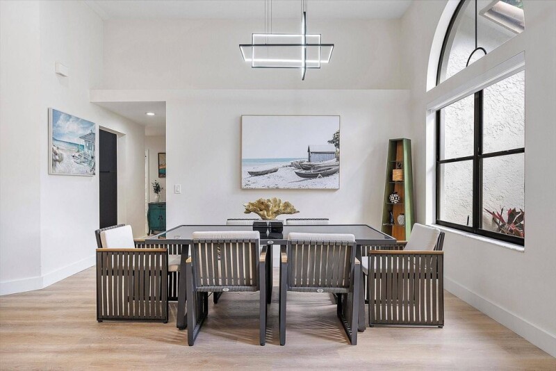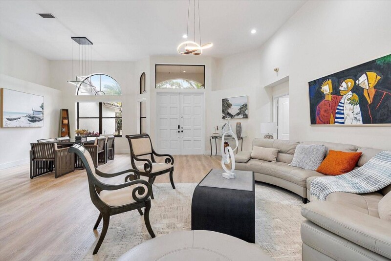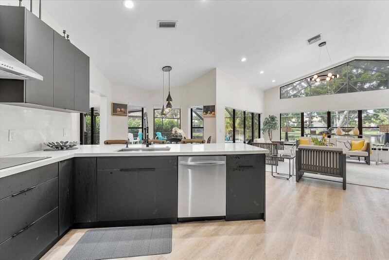 Exquisite Waterfront Home in Exclusive Tequesta Community. Nestled among gorgeous tree-lined streets and picturesque lakes, this beautifully renovated home offers upscale living with breathtaking water views. The thoughtfully designed split floor plan creates a spacious and inviting atmosphere. Recent upgrades include high-quality flooring throughout and stylish light fixtures. At the heart of the home, a fully remodeled kitchen boasts ample workspace, sleek finishes, and brand-new appliances (2023). The primary bathroom has been elegantly updated for a spa-like retreat. Just outside you'll find an enclosed private heated pool oasis, perfect for relaxation or entertaining. A paver circular driveway enhances curb appeal, while the 2009 roof ensures lasting durability.