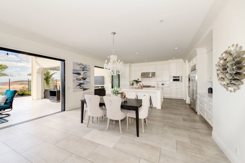 Welcome to 29 Sorrel, an exquisite residence with PANORAMIC VIEWS nestled on the highest cul de sac street location within the prestigious community of Baker Ranch. Residents in this community enjoy low HOA dues and NO Mello Roos! This stunning home, built in 2017, offers an expansive 4,224 square feet of living space featuring 5 bedrooms and 5.5 bathrooms, thoughtfully designed for both comfort and elegance. The home boasts a beautiful foyer highlighting a grand circular staircase and impressive 10-foot ceilings creating a sense of grandeur and spaciousness. One full bedroom with an ensuite bathroom is conveniently located on the first floor. The open floor plan and dual sets of large glass bi-fold doors create the perfect environment for indoor/outdoor living. Enjoy the sunset views from under the covered outdoor California room, enjoy soaking in the jacuzzi or grill on the convenient BBQ peninsula. Culinary enthusiasts will appreciate the state-of-the-art kitchen with an oversized island with seating for 4 and equipped with high-end appliances, including a 6-burner stove, double ovens, beverage refrigerator and butler's pantry. The kitchen's open design seamlessly integrates with the living and dining areas, making it ideal for entertaining guests. Upstairs, you will be greeted by a versatile bonus room and 4 additional bedrooms and bathrooms. The generously sized primary suite includes a sitting area that could easily be used as an office and has access to a large covered deck for more forever views. On a clear day you can see all the way to LA! Each secondary bedroom is generously sized, offering en-suite bathrooms and ample-sized closets, providing privacy and convenience for all residents. Baker Ranch offers a wealth of amenities, including hiking and biking trails, pools, sports courts, and parks. Its proximity to the Irvine Spectrum and freeways provides residents with convenient access to shopping, dining, and entertainment options. This property exemplifies luxury living in one of Lake Forest's most sought-after communities, combining elegant design, modern amenities, and a prime location.